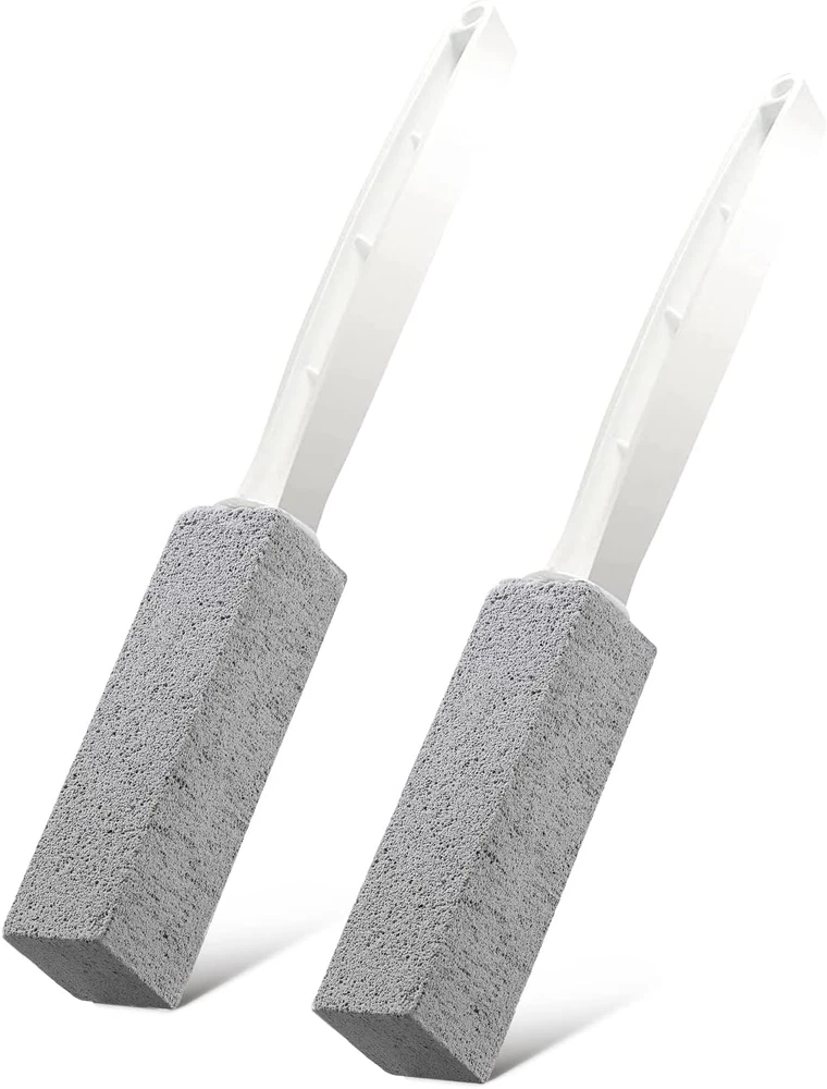 [5X CLEANING IMPROVEMENT] - Efficiency, easy and effective toilet bowl cleaning. This new pumice cleaning stone brings a 5X cleaning improvement to make it easier for you to remove the stubborn stains, hard water rings and other dirt, an efficiency cleaning tool for toilet bowl, grilling rack, pool tile, meeting your various needs. [HIGH QUALITY MATERIAL] - This toiler bowl cleaning tool is built with natural pumice stone which features non-toxic, odorless and BPA free, no more pungent chemical cleanser. The pumice cleaning stone is totally safe and friendly for human beings, pets, plants and water, and it never leave scratches on the surface of the ceramic tile and metal. [ERGONOMIC HANDLE ]- The handle of the pumice cleaning stone is made of superior PP material and meets ergonomics to fit most people’s hand perfectly, it helps to increase grip and prevent accident slipping to make your toilet cleaning safer while the end of the handle with hanging hole to make it easy to store. [WIDELY APPLICATION] - Creating a cleaning environment for the whole family and now having a positive attitude towards your lifestyle, our toilet bowl pumice cleaning stone is wide used for cleaning toilet, swimming pool, kitchen sink, ground trough. Great cleaning tool for home, dorm room, office building.Remember: please wet it before using it. [WHAT YOU GET] - Package includes 2 pack toilet bowl pumice cleaning stone in dimension of 9.25”x1.38”. We’re devoted to provide high quality and practical household accessories to ease your housework, 30 days money back, 1 year warranty, feel free to contact us if there is any issue with our pumice cleaning stone. Product Description Perfect for Treating Stubborn Stains Our cleaning pumice is perfect for treating stubborn stains on a variety of surfaces. It gently removes calcium deposits, scale and hard water rings from toilets, sinks, bathroom tile and ceramic surfaces without causing scratches. On top of that, it effectively removes rust and grease from grills and ovens. Trust me two pumice stones can make your toilet look new in minutes, so why spend money on a new toilet? How to use it? 1、Note: Wet it before use! 2、Keep the toilet surface moist. 3、Use it on a small scale first.Rub gently, not too hard. 4、Make sure it's okay to use it on a wide scale. 5、Rinse with water. 6、Store the stone until it is completely. Efficiently solves toilet rims and hard water stains Gives you a sparkling bathtub The perfect tool for cleaning hard water stains in swimming pools Remove grease and carbon ABOUT THE MATERIAL the pumice brush is made of fine material with strong cleaning ability and is gentle on the surface of the toilet. It can be sharpened into different shapes for easy cleaning of narrow edges and corners of different shapes. After cleaning, just rinse with water, pumice will not be left on the surface.