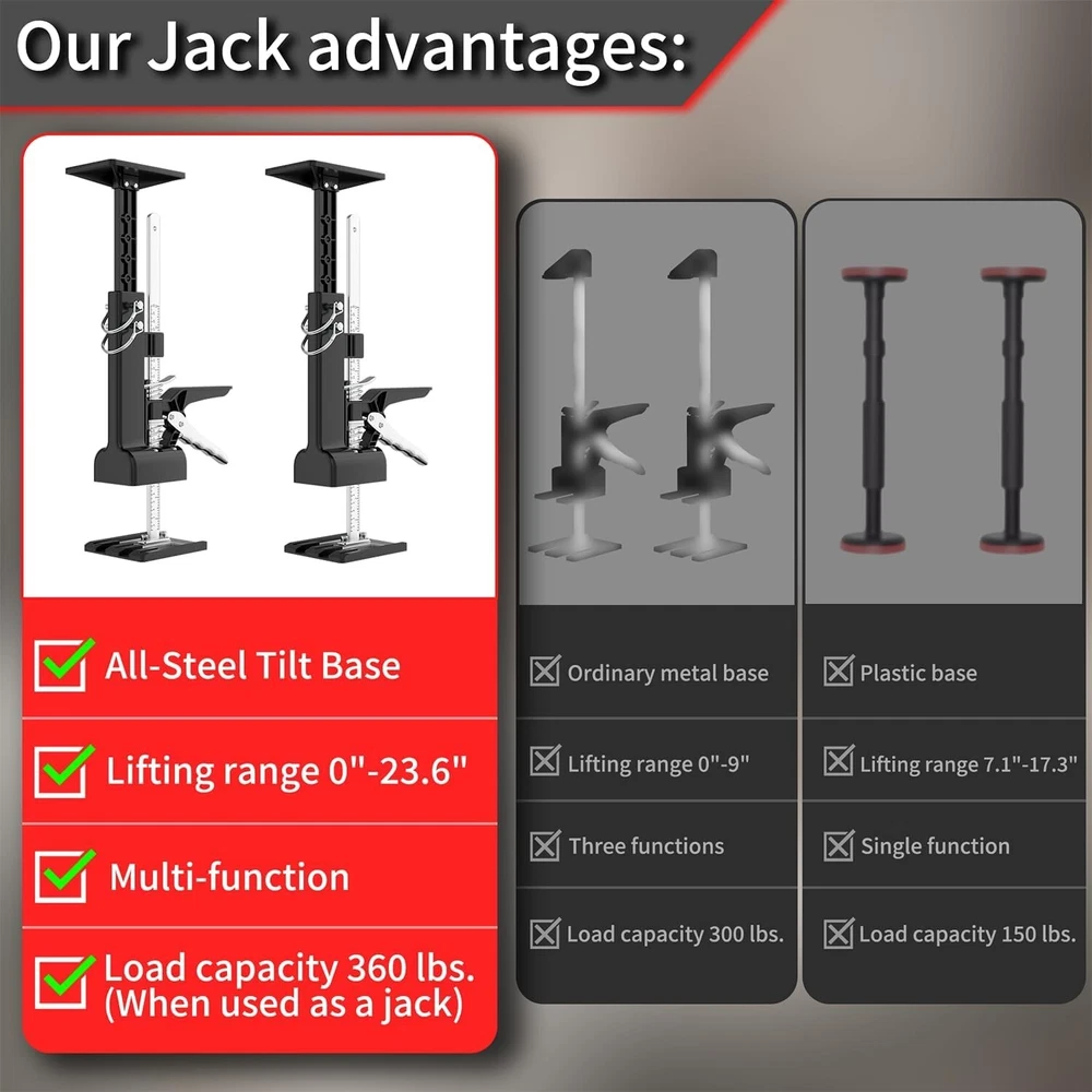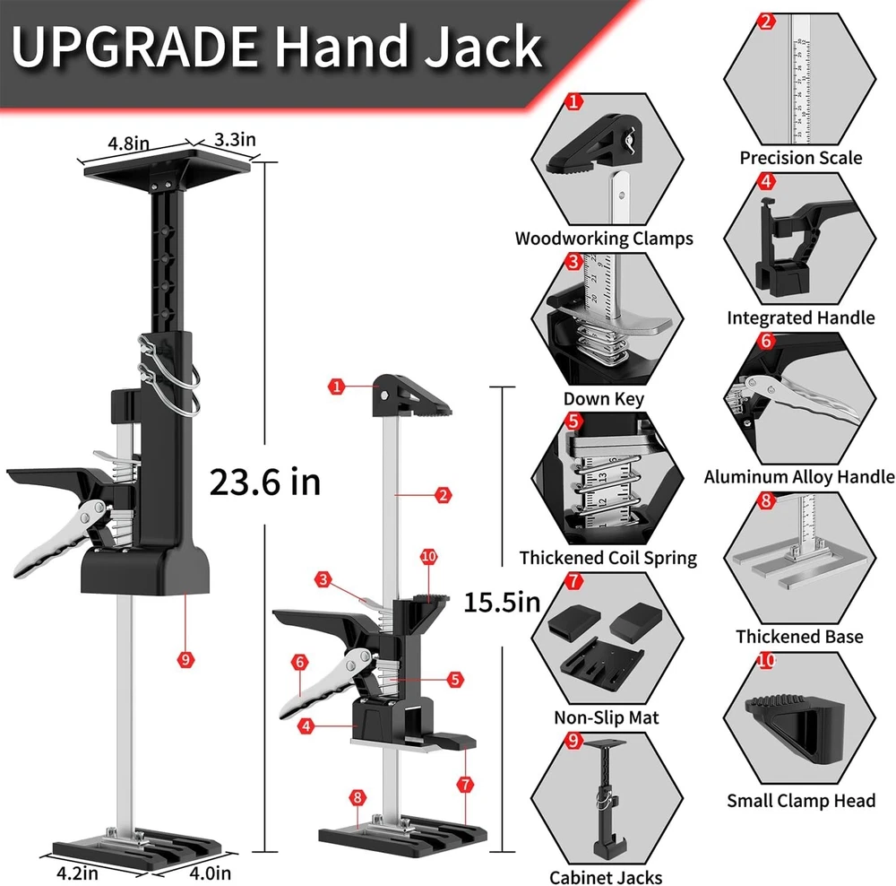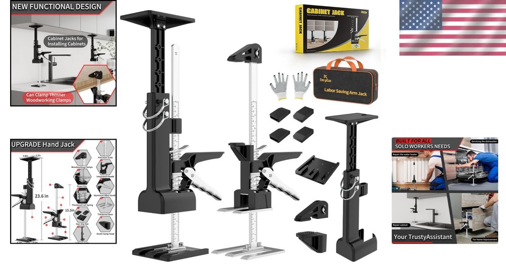 2-Pack Multifunctional Cabinet Jacks - 360 lbs Capacity, Adjustable 23.6" Height ‹ › ‹ › ‹ › ‹ › ‹ › ‹ › ‹ › ‹ › ‹ › 2-Pack Multifunctional Cabinet Jacks -360 lbs Capacity -Adjustable 23.6" Height Versatile Performance: Seamlessly switch between three essential functions: labor-saving arm, cabinet jack support pole, and woodworking clamp. Customizable support frame and woodworking clips for effortless task management. Built to Last: Crafted with materials including an all-steel base and reinforced design. Features a stainless steel wave spring and aluminum alloy handle for durability. Thickened solid slide rail and anti-slip rubber pads protect your floors. Effortless Operation: User-friendly design ensures a smooth workflow. Attach the support frame for seamless integration, switch to woodworking clamps in seconds. Hands-Free Support: Provides the extra hand you need with our hand lifting jack tool. One-hand squeeze handle offers precise height control for easy lifting. Precision Control: Full command over your projects with precise height adjustment. Supports heavy loads or cabinet installations with unmatched versatility, up to 360 lbs. Why choose our Multifunctional Cabinet Jacks? Are you ready to streamline your woodworking and installation projects? Our 2-Pack Multifunctional Cabinet Jacks are designed for the versatile handyman who demands power and precision. With a remarkable capacity of 360 lbs, and adjustable height of 23.6 inches, you can easily tackle a variety of tasks, from lifting heavy cabinets to woodworking projects. Built with materials ensuring longevity, these jacks not only make your work easier, they also protect your floors while maintaining stability. Embrace efficiency - invest in our Multifunctional Cabinet Jacks today and elevate your craftsmanship to the next level! Shipping Free & Fast Shipping - We offer free shipping to most of the USA with a normal delivery time of 3-7 days. However, due to the current situation, additional delivery time (up to 3 weeks) may be required for some items. Alternative Carriers - We may use alternative carriers (e.g. USPS, FedEx, UPS, etc.) to ensure your package arrives safely and on time. Due to the use of multiple carriers, we are unable to provide a tracking number automatically. Handling Time - Orders are processed and shipped within 1-2 business days of receiving cleared payment. Shipping Restrictions - Shipping to Alaska, Hawaii, Puerto Rico, Guam, and other US territories may incur shipping charges or delivery restrictions. Please contact us before ordering, or your order can be refunded/cancelled. State Restrictions - There may be restrictions based on your state of purchase. For example, certain items may not be shipped to California due to state regulations. Contact for Tracking Updates - If you require tracking updates or have any concerns about the delivery of your order, please feel free to contact us, and we will be happy to assist you. Return 30-Day Hassle-Free Returns - We want you to be completely satisfied with your purchase. If you are not, you can return the item within 30 days of receiving it for a full refund or exchange. Easy Return Process - To start a return, simply contact us and we will provide you with a prepaid return shipping label and detailed instructions. Restocking Fee - There are no restocking fees for returns. However, the buyer is responsible for return shipping costs if the return is not due to a seller's error. Refund Processing Time - Refunds will be processed within 5 business days of receiving the returned item in its condition. Payment We accept all major credit cards, PayPal, and Apple Pay for your convenience. Your payment information is secure and encrypted to ensure a safe and seamless transaction. Please complete your payment within 3 days of purchase to avoid any delays in shipping. Feedback Your feedback is extremely important to us. We strive to provide the best products and customer service possible. If you are satisfied with your purchase, please take a moment to leave us a positive review. If you have any concerns or issues with your order, please contact us before leaving negative feedback. We are committed to resolving any problems and ensuring your satisfaction. Contact Us If you have any questions or concerns, please feel free to out to our customer support team. You can contact us through the eBay messaging system. We are available Monday to Friday, 9:00 am to 5:00 pm EST, and we will do our best to respond to your inquiry within 24 hours. Buy it now and enjoy a pleasant shopping experience! Unit Quantity: 2 Material: Aluminum,Metal,Steel Mounting: Free Standing Department: Adults Room: Garage,Utility/Laundry Room Features: Adjustable Shelves,Handles,With Shutters Set Includes: Housing Item Height: Cabinet Jacks Item Length: Cabinet Jacks Item Width: Cabinet Jacks Type: Cabinet Door Style: Slab Color: Black Number of Shelves: 1 Item Depth: 4.25 in Item Weight: 6.6 lb Handle Material: Aluminum Style: Labor Saving Arm Number of Drawers: 0 Number of Doors: 0 Number of Items in Set: 2 Handle Finish: Polished Finish: Painted Distance from Floor to Bottom: 0 in Shape: Rectangular Unit Type: lb
