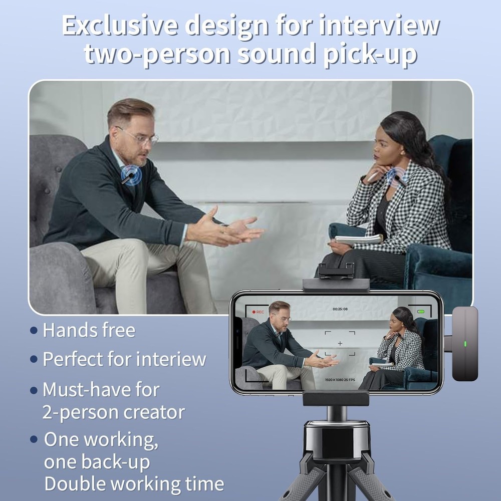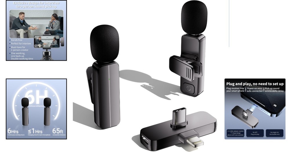 2-Pack Wireless Mini Lavalier Microphones with Noise Reduction for Smartphones ‹ › ‹ › ‹ › ‹ › ‹ › ‹ › ‹ › ‹ › ‹ › 2-Pack Wireless Mini Lavalier Microphones with Noise Reduction Perfect for Your Audio Needs! Upgraded Design for Two-Person Sound Pick-Up: Our double wireless microphone system supports simultaneous sound capture from both parties, ideal for interviews, vlogs, or live streaming on platforms like YouTube, Facebook, and TikTok. User-Friendly PLUG & PICK-UP: Forget about adapters or apps! Simply plug the receiver (compatible with both Lightning and USB-C) into your device and power on the microphones for an instant connection and smooth sound capture. Real-Time Crystal Voice Sync with Noise Cancellation: Experience ultra-low latency (0.009s) with real-time auto-sync technology. Coupled with a built-in noise reduction chip, this microphone offers crystal-clear audio quality at 44.1~48kHz stereo for flawless recordings. 65FT Audio Range & 6H Working Time: Designed for long-distance audio capture, enjoy clear sound from up to 65 feet away. With a robust, rechargeable battery offering over 6 hours of usage and quick 1-hour charging time, you're always ready to create. Widely Compatible: Featuring a convenient "Y" shape dual connector, you can connect the receiver to your Apple or Android device—even with protective cases on. Why Choose Our Wireless Lavalier Microphones? Elevate your audio experience with our 2-Pack Wireless Mini Lavalier Microphones, designed for creators who demand quality and performance. Whether you're a student, blogger, journalist, or fitness coach, these microphones will seamlessly integrate into your workflow. Capture every moment clearly, effortlessly, and with professional-grade sound quality. Don't settle for less when it comes to your audio—order your Wireless Mini Lavalier Microphones today and take your content creation to the next level! Shipping Free & Fast Shipping - We offer free shipping to most of the USA with a normal delivery time of 3-7 days. However, due to the current situation, additional delivery time (up to 3 weeks) may be required for some items. Alternative Carriers - We may use alternative carriers (e.g. USPS, FedEx, UPS, etc.) to ensure your package arrives safely and on time. Due to the use of multiple carriers, we are unable to provide a tracking number automatically. Handling Time - Orders are processed and shipped within 1-2 business days of receiving cleared payment. Shipping Restrictions - Shipping to Alaska, Hawaii, Puerto Rico, Guam, and other US territories may incur shipping charges or delivery restrictions. Please contact us before ordering, or your order can be refunded/cancelled. State Restrictions - There may be restrictions based on your state of purchase. For example, certain items may not be shipped to California due to state regulations. Contact for Tracking Updates - If you require tracking updates or have any concerns about the delivery of your order, please feel free to contact us, and we will be happy to assist you. Return 30-Day Hassle-Free Returns - We want you to be completely satisfied with your purchase. If you are not, you can return the item within 30 days of receiving it for a full refund or exchange. Easy Return Process - To start a return, simply contact us and we will provide you with a prepaid return shipping label and detailed instructions. Restocking Fee - There are no restocking fees for returns. However, the buyer is responsible for return shipping costs if the return is not due to a seller's error. Refund Processing Time - Refunds will be processed within 5 business days of receiving the returned item in its condition. Payment We accept all major credit cards, PayPal, and Apple Pay for your convenience. Your payment information is secure and encrypted to ensure a safe and seamless transaction. Please complete your payment within 3 days of purchase to avoid any delays in shipping. Feedback Your feedback is extremely important to us. We strive to provide the best products and customer service possible. If you are satisfied with your purchase, please take a moment to leave us a positive review. If you have any concerns or issues with your order, please contact us before leaving negative feedback. We are committed to resolving any problems and ensuring your satisfaction. Contact Us If you have any questions or concerns, please feel free to out to our customer support team. You can contact us through the eBay messaging system. We are available Monday to Friday, 9:00 am to 5:00 pm EST, and we will do our best to respond to your inquiry within 24 hours. Buy it now and enjoy a pleasant shopping experience! Maximum SPL: 70 Unit Quantity: 2 Pack Item Weight: 0.7 ounces Connectivity: Bluetooth,USB-C,Lightning Features: Noise Cancellation,Plug and Play,Real-time Crystal Voice Sync,Automatic Connection Compatible Model: iPhone Form Factor: Lavalier/Lapel Diaphragm Size: Small Suitable For: Live Performance Transducer Type: Dynamic Mount Type: Clip-on Polar Pattern: Omnidirectional Color: Black
