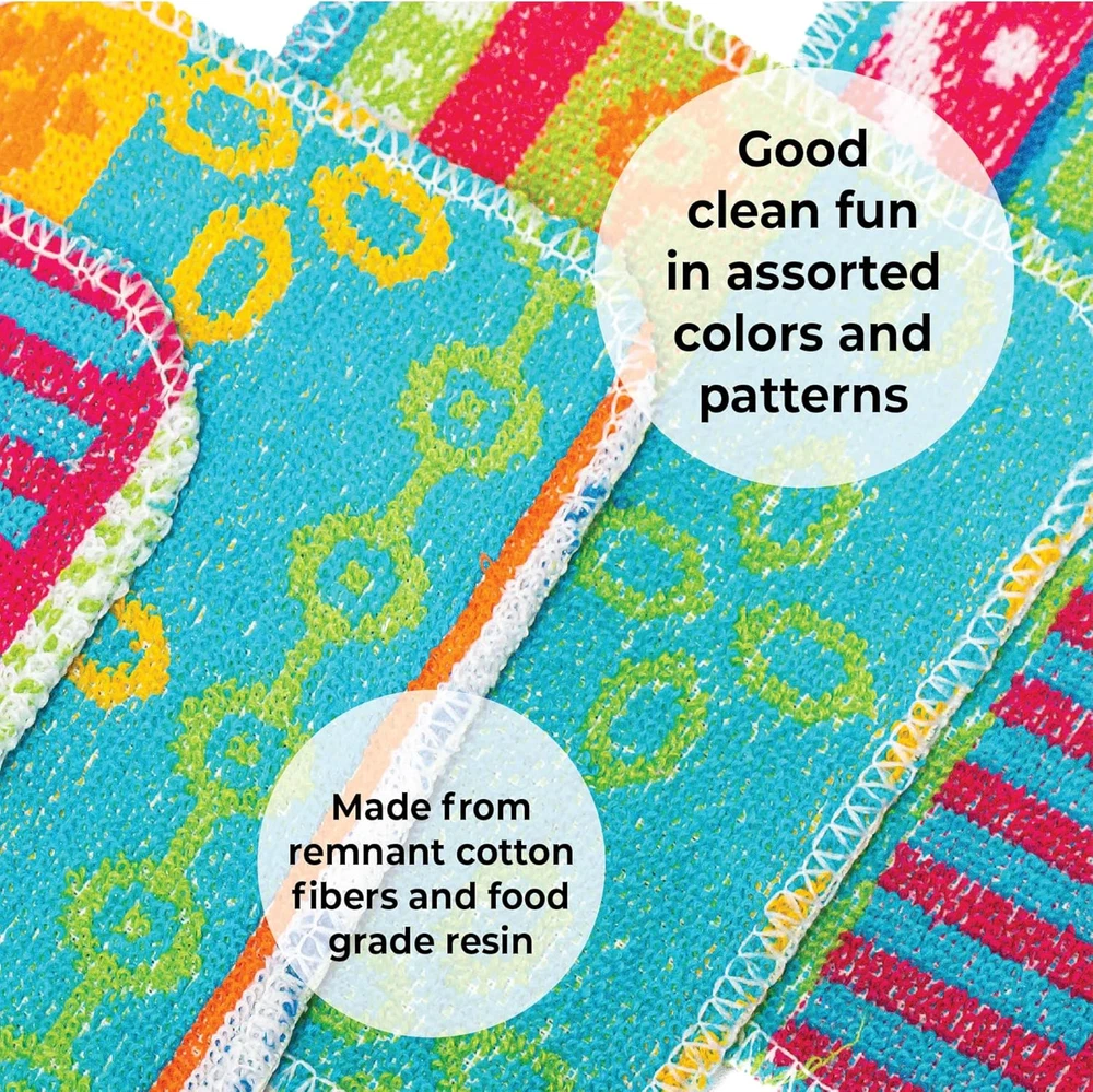 LONG-LASTING - Say goodbye to your old dish scrubber and hello to Skoy Scrub. Made from remnant cotton fibers and a non-toxic hardener, this scrub is designed to outlast old green scouring pads or scrub sponges, saving you money and reducing waste. SAFE ON MOST SURFACES - The versatile Skoy Scrub works wonders on most surfaces, including most non-stick pans, ceramic, glass, and cooktops. Our reusable cleaning scrub can be cleaned and used multiple times. Please test on delicate surfaces before use. EASY TO CLEAN SCRUBBER - Cleaning these dishwashing scrubbers is a breeze. Simply pop them on the top rack of your dishwasher and they are as good as new. If food particles are caught in the soft scrub, simply rub the scrub against itself. SUSTAINABLE CLEANING PRODUCT - We care about the planet. The Skoy Scrub is made in Europe from remnant fibers from the toweling industry. So when you choose Skoy Scrub, you're choosing a cleaner and brighter future. FUN COLORS AND DESIGNS - Who said cleaning has to be boring? The Skoy Scrub comes in a variety of colors and designs, adding a dash of fun to your cleaning routine. Replace your steel wool, brillo pads, brushes, and sponges with our kitchen scrubbers. Introducing the Skoy Scrub, a revolutionary concept in kitchen scouring pads. Crafted in Europe from high-grade cotton and non-toxic hardeners, this reusable dish scrubber is designed to outlast traditional scrubbers including steel wool, brillo pads, brushes, and sponges, saving your pocket and reducing waste. The Skoy Scrub is not just a kitchen scrubber; it's a versatile cleaning companion that works wonders on most surfaces including most non-stick pans, ceramic stovetops, and glass. With its easy-to-clean design, simply pop it on the top rack of your dishwasher and it's good as new. Available in a variety of colors and designs, the Skoy Scrub adds a dash of fun to your cleaning routine. Monochromatic colors and multiple bundle pack options are also available which include the Skoy Dish Cloths along with Skoy Scrub. So why stick to the old when you can switch to the new? Use the Skoy cleaning products for a cleaner, brighter, and happier household experience.