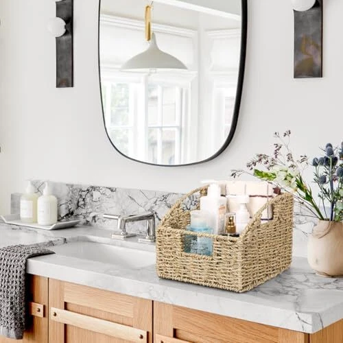 Return Policy Fast Delivery Trusted seller 2-Pack Seagrass Wicker Baskets for Storage, Trapezoid Decorative Baskets with Handles, Hand Woven Pantry Baskets, Open-Front Storage Baskets for Shelves, 8.4"L x 10.2"W x 7.4"H Product Description Product Dimensions: A package contains two storage baskets. They have two built-in handles. They measure 8.4 inch lengthwise, 10.2 inch widthwise, and 7.4 inch heightwise. Due to being handmade, sizes may vary by 1/4 inch Open-Front Design: The wicker storage baskets with low fronts and unique hand-woven weave not only add to the aesthetic and decorative appeal of the baskets, but also allow for better visibility and accessibility of the wicker baskets, making it easier to place and retrieve items Practical Function: Each pantry basket has 3 handles that can be lifted and pulled from the front or sides, making it easy to carry items from the shelf to the countertop. The woven baskets for shelving are made with a sturdy metal frame for durability Storage of Various Items: This multifunctional storage basket is perfect for storing spices, tinned food, pet food, baking ingredients, seeds and nuts, as well as personal care products, stationery, remote controls, CDs and small items Versatile Applications: You can organize your room with this hand-woven natural wicker storage basket to save space and keep it neat. It is ideal for living room, kitchen, bathroom, bedroom, living room, office Shipping Returns Payment Shipping Shipping is FREE to all addresses other than APO/PO boxes in the lower 48 states. All our stock ships from US-based warehouses. Shipped via USPS or UPS (depending on location and package weight) Unless stated otherwise, all orders will ship within 24-72 hours of your payment being processed. Check our feedback to see the great reviews of FAST shipping we offer. Returns Seller does not accept returns Payment We currently accept payment via eBay managed payments only. Once payment is cleared, we will dispatch your shipment within 1-3 business days. Please refer to the "Shipping" tab for more information regarding shipping speed to your destination.