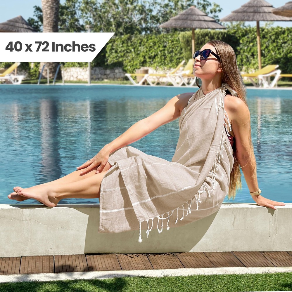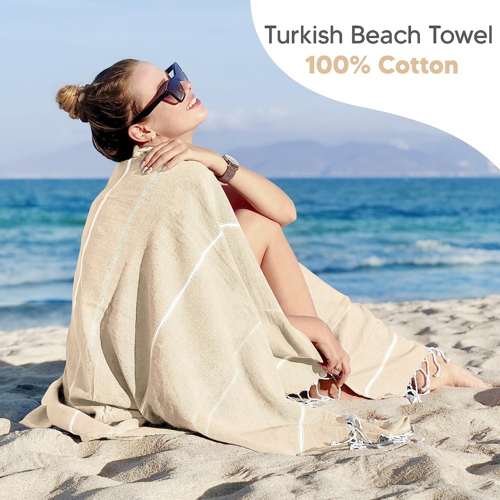 These Turkish beach towels are a summer must-have! Super soft, lightweight, and surprisingly absorbent—they dry fast and don’t cling to sand. The oversized design is perfect for lounging at the beach or pool, and the neutral beige color goes with everything. Love that they come in a pack of two—great value for such high-quality cotton towels. Perfect for travel too!