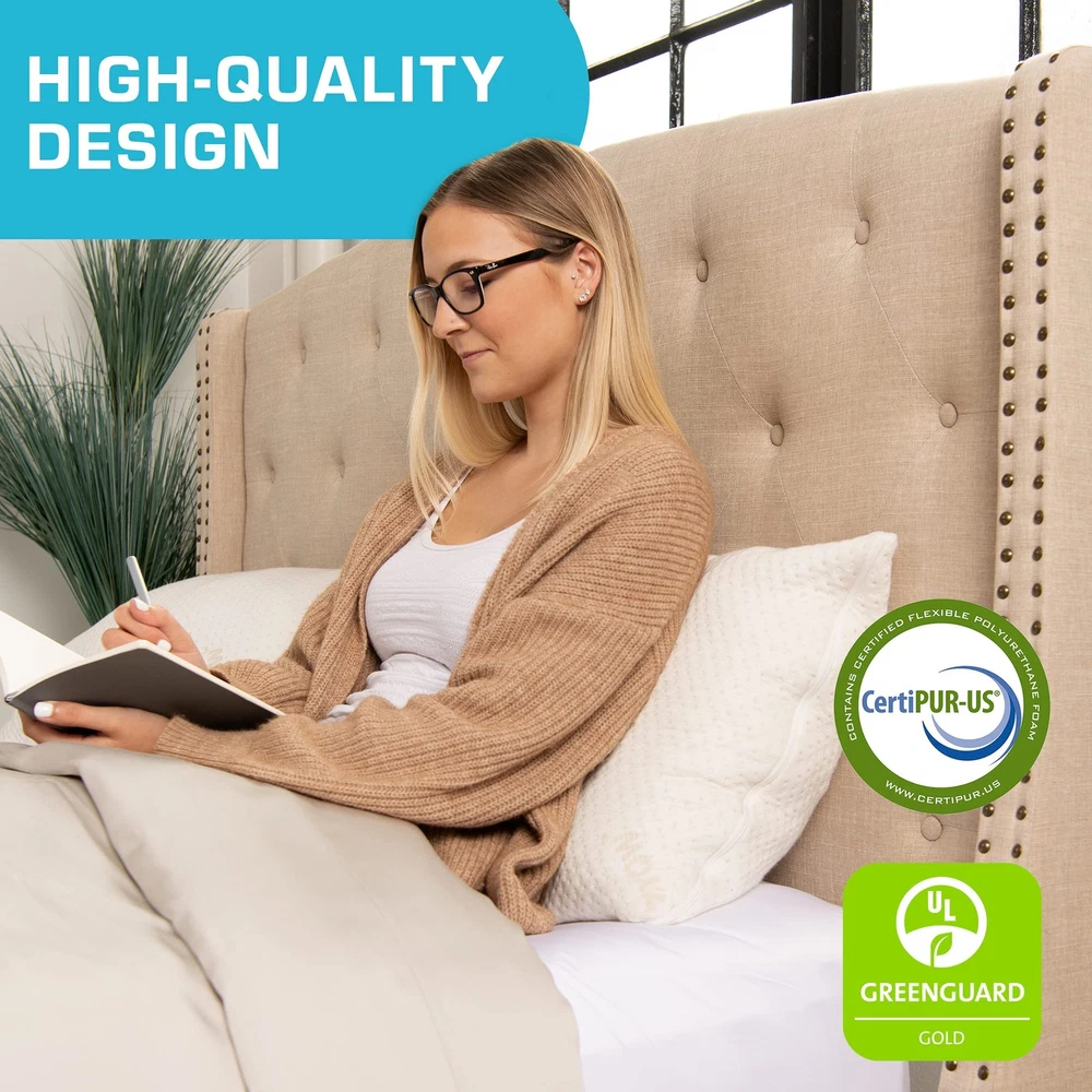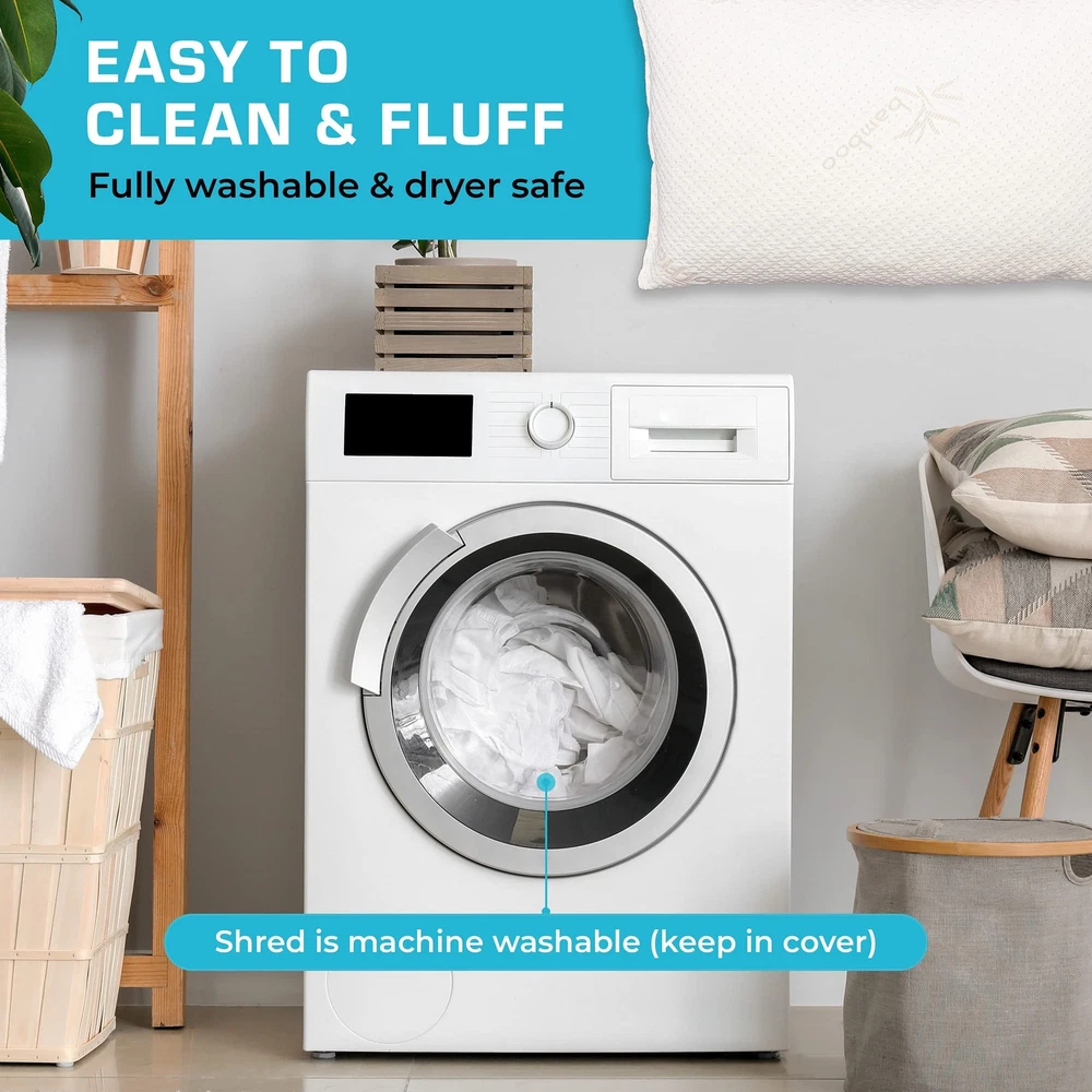 The Problem With Most Pillows You shape your pillow to give good support but as the pillow collapses and heats up your support goes away which causes you to wake up tossing, turning and flipping it to the cool side. Experience The Worlds Most Comfortable Pillow! Shredded Memory Foam Pillow and Micro-Vented Rayon Pillow Cover can help eliminate these problems! Everyone is different and likes their pillow shaped to their individual preference. Our pillow comfortably shapes to your head & neck in any position while maintaining proper support all night long ensuring you a better nights sleep. It will be the most comfortable pillow that you will ever own. Our Micro-Vented Rayon Pillow Cover keeps your pillow cool all night long. 70% of people do not like their pillows and lose sleep because of them. With a Good Nights Sleep Every Night You Will Have More Energy Every Day! Adjustable: Whether you prefer firm, fluffy, or fine, our memory foam pillows can meet your napping needs. Add or remove the padding with the inner zipper to set your level of comfort Lump-Free: This bed pillow combines luxury with comfort to create a smooth, no-lump sleeping experience, every night Cooling - We've designed our back, stomach, and side sleeper pillow with extra-breathable fabric to keep you cool even on those scorching summer nights. We made our cooling pillows Cover with Micro-Vented Rayon Derived from Bamboo to keep you cool all night long. 65% Polyester 35% Rayon Derived from Bamboo, Imported. Stays Firm: Our cooling pillow won't fall flat on you. Rest your weary head for years to come on a pillow that's designed to maintain its shape, even after heavy usage Easy-Clean Cover: Our bed pillows have a machine washable cover for extra-easy cleanup on your terms