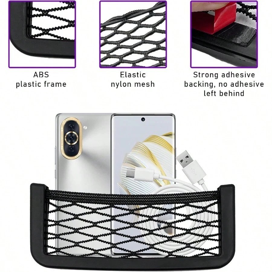 🚗 Car Pocket Phone Net Universal Seat Side Storage Net Bag Compact & Convenient: This set includes 2 PCS car pocket phone nets, perfect for organizing your vehicle's interior. Ideal for keeping your phone, purse, or bag secure while driving. 📱💼 Easy Installation: Comes with double-sided tape for hassle-free installation on any seat side. Simply peel and stick for quick setup. No tools required! 🔧 Versatile Use: The universal design fits most cars, making it a versatile addition to your car's storage needs. Keep your essentials within reach without cluttering your space. 🛍️ Organizer Solution: Transform your car's interior into a tidy space. This net bag helps maintain order, ensuring your items are neatly stored and easily accessible. 📦✨