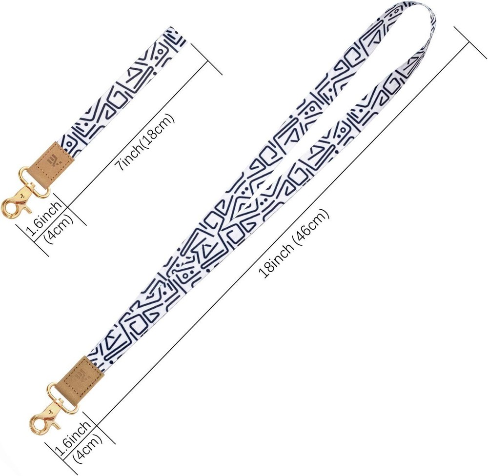 ENJOY THE FREEDOM OF YOUR ON-THE-GO LIFESTYLE: These wrist and neck keychain lanyards are perfect for those who prefer a minimalist lifestyle. Ideal for keeping just the essentials, eliminating the need to carry extra items when you go out, bringing more convenience to your daily life. VARIOUS FASHIONABLE PATTERN DESIGNS: Available in a variety of colors and patterns, regularly updated to help you find the coolest badge lanyard, wristlet keychain, or neck lanyard to match your style. HIGH QUALITY MATERIAL: Made from thickened dense polyester with washable and colorfast printed patterns. Genuine leather enhances durability. The zinc alloy metal clasp is strong and designed for long-term use. FLEXIBLE APPLICATION: Suitable for use with keychains, key rings, ID badges, student cards, card wallets, whistles, decorative accessories, cell phones, digital cameras, and more. Pack of 2 lanyards included. Product dimensions: 11.5 x 2.76 x 0.5 inches.