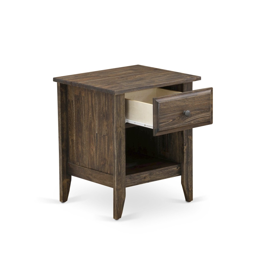 EAST WEST FURNITURE 2-PC GRANBURY BED SETOur fabulous faux leather cushioned padding platform bed will make any room luxurious and comfortable to rest in. We are offering a 2-piece bed set that contains 1 bed frame with a headboard as well as an attractive mid century modern nightstand. This platform bed is suitable for traditional bed rooms as well as a distinctive twist to any contemporary environment. Our wooden set for bedroom has 1 bedroom nightstand with classic styling. Durable hardwood slats offer better support and fewer sagging for both inner-spring and foam mattresses. Our bed set is simple to clean with a damped cloth because of its smooth finish. This bed can be simply assembled with the provided step-by-step assembly instruction and hardware pack.FEATURES Material: Free Shipping Over $49.99* Details 2-Pc King Bedroom set with padded Bed and Distressed Jacobean Nightstand - Dark Product Description: EAST WEST FURNITURE 2-PC GRANBURY BED SET Our fabulous faux leather cushioned padding platform bed will make any room luxurious and comfortable to rest in. We are offering a 2-piece bed set that contains 1 bed frame with a headboard as well as an attractive mid century modern nightstand. This platform bed is suitable for traditional bed rooms as well as a distinctive twist to any contemporary environment. Our wooden set for bedroom has 1 bedroom nightstand with classic styling. Durable hardwood slats offer better support and fewer sagging for both inner-spring and foam mattresses. Our bed set is simple to clean with a damped cloth because of its smooth finish. This bed can be simply assembled with the provided step-by-step assembly instruction and hardware pack. FEATURES MaterialEngineered Wood Bed faux leather headboard colorDark Brown Bed Frame Legs ColorBlack Night Stand for Bedrooms ColorDistressed Jacobean Small Nightstand DimensionsLength21; Width18; Height24. Package Includes 1 Bed Frame and 1 Small End Table. NoteBed, Headboard, and wooden slats are provided. The bed mattress will not be included in this bed set. SIZE OPTIONS AVAILABLE: OPTIONS SKU GB25F-1GA07 East West Furniture 2-Piece Granbury Bedroom Set with Button Tufted Full Bed Frame and a Distressed Jacobean End Tables - Dark Brown faux leather with Black Texture and Black Legs Dimensions of Bed FrameLength84; Width59; Height47. . OPTIONS SKU GB25K-1GA07 East West Furniture 2-Piece King Bedroom Furniture set with Button Tufted Upholstered Bed and 1 Distressed Jacobean Nightstand - Dark Brown faux leather with Black Texture and Black Legs Dimensions of king bedLength89; Width81; Height47. .
