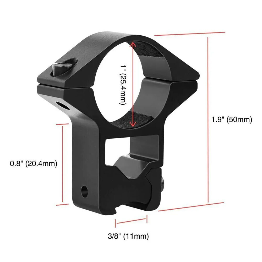 Heavy Duty 1"Scope Ring Picatinny Weaver Rail Laser Torch Mount w/30mm Reducer 9.89 USD Free shipping Tactical See-Thru Flat Top 1" Riser Scope Mount for Picatinny Rail USA 10.99 USD Free shipping Dovetail Rail Scope Extend Riser Mount with 25.4mm Scope Ring Low Profile Mount 15.99 USD Free shipping 1"/30mm Ring Quick Detach Scope Cantilever Mount w/45 Degree Offset Weaver Mount 31.99 USD Free shipping Tactical See-Thru Flat Top 14 Slot Scope Mount/ Extend Dovetail 9 Slot Mount 11.59 USD Free shipping 3-10x42E Red Green Mil-dot Reticle Sight + Red Dot Sight Reflex 4 Reticles Sight 80.99 USD Free shipping 45 Degree Offset Weaver Compatible Mount Accessory Rail Adapter Aluminum USA 8.79 USD Free shipping Red 1"/30mm Scope Rings Bracket 20mm Picatinny Rail Optical Sights Base Mounts 19.89 USD Free shipping 2 Pcs 1" Diameter 10mm 3/8" High Profile See-Thru Dovetail Scope Ring Mount USA 7.69 USD Free shipping 1" Offset Scope Ring with 20mm Rail Mount for Scopes / Laser / Flashlight USA 9.19 USD Free shipping 2pairs 30mm Scope Rings High Profile 3/8 Dovetail 11mm Rail+Picatinny 20mm Rail 15.99 USD Free shipping 3-Slot Quick Release Detach QR QD 1/2" Mini Riser Block Mount for Picatinny Rail 8.86 USD Free shipping Scope Rings Low Profile Riflescope Mount 1" inch Ring for Weaver Picatinny Rail 7.69 USD Free shipping Sling Swivel Mount Adapter for 20mm Rail/For Rem 870 12GA 1" Tube Mount 9.69 USD Free shipping 2pairs High+Low Profile 25.4mm / 1" Scope Ring Picatinny weaver Mount Black USA 12.99 USD Free shipping Red Green Dot Sight Reflex Holographic Scope Tactical Optics Mount 20mm Rails 29.59 USD Free shipping Tactical Hunting 12GA Rail Picatinny Mounts Barrel Mount Tube Rail Adapter USA 9.59 USD Free shipping Quick Release 0.5" Low Profile Riser QR Block Mount for Picatinny / Weaver Rail 9.49 USD Free shipping Features Durable all metal construction Lightweight, made of aluminum with a black anodized matte finish Easy installation (tool included) Compatible with most lasers, scopes, and flashlights Fabric liner for increased friction and protection of your accessories Fits 11mm (3/8") rails Specifications High Profile Dimensions: 2" (height) x 1.6" (width) x 15mm (depth) Low Profile Dimensions: Width 1.75" Height 1.5" Thickness 15mm High Profile Weight: 37g (1.3 oz) per ring Low Profile Weight: 51g (1.8 oz) per ring Color: Black Material: Aluminum, Steel Ring Diameter: 1" Fits: 11 mm (3/8") rails Items Included Two (2) 1" ring mounts for 11mm dovetail rails One (1) Allen key