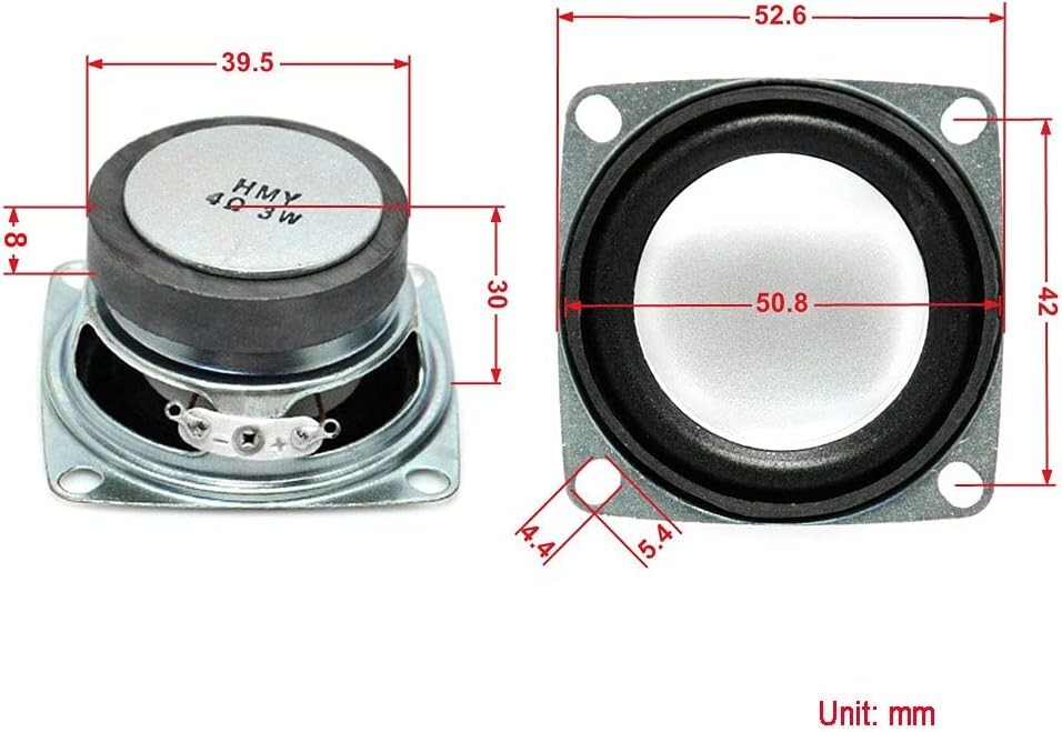 2pcs 2" 4Ohm 3W Full Range Audio Speaker Stereo Woofer Loudspeaker for Arduino It will work well for home audio-visual equipment and other HiFi speakers. Rated Power: 3W, Diameter: 2 inches Rated Impedance: 4 ohm Not include the Volume Control Cable Specific Uses For Product : DIY electronics projects, Arduino-based prototyping, small-scale audio systems, educational projects for learning about audio technology