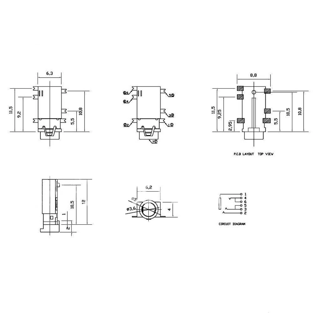 2Pcs 3.5mm Female Audio Connector 6 Pin SMT SMD Headphone Earphone Jack PJ342