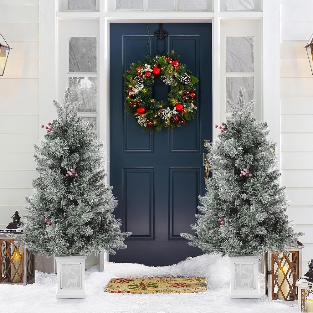 International 4.5 Foot Pre-Lit Potted Flocked Arctic Fir Artificial Christmas