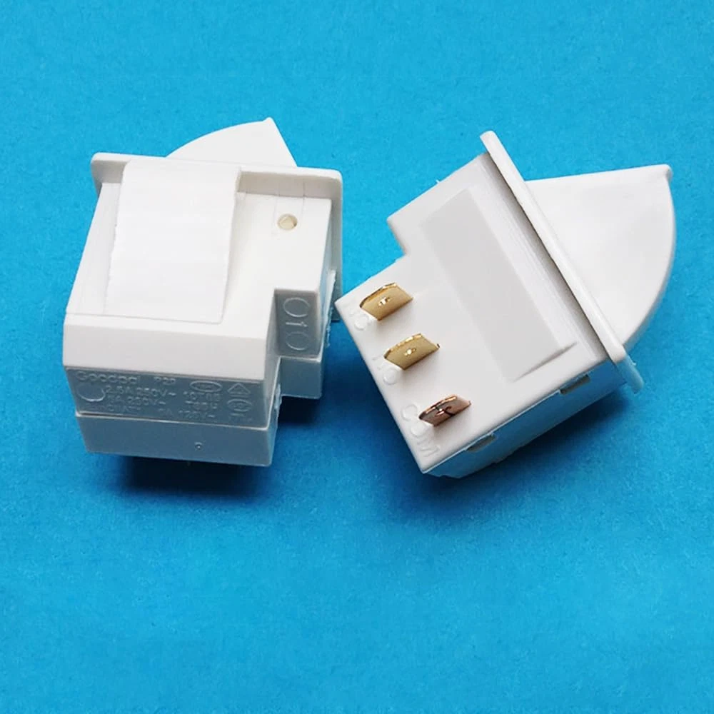 Keep your refrigerator or freezer properly lit with this 2-pack DSkoiph 3-Pin Door Light Switch Set , compatible with major brands like GE, Whirlpool, Maytag, Admiral, Amana, Kenmore, KitchenAid, and Magic Chef. These momentary switches are ideal replacements for faulty or worn-out door light controls, ensuring reliable operation and easy installation. Perfect for both top and bottom freezer models. Key Features Quantity: 2 Pieces Type: 3-Pin Momentary Door Light Switch Compatible Brands: GE, Whirlpool, Maytag, Admiral, Amana, Kenmore, KitchenAid, Magic Chef Function: Replaces worn or faulty fridge and freezer door light switches Easy Installation: Plug-and-play replacement design Durable Construction: Long-lasting performance Ideal For Refrigerator and freezer repair Appliance technicians DIY home appliance maintenance Replacing broken or defective door switches Rated Voltage: 125/250V AC. Rated Current: 2.5A 250V/6.0A 125V. Function: NC: Normally Closed, when refrigerator's door open it is close and light will be on. Universal compatible design, replacement for most Whirlpool, GE, Kenmore, Maytag, KitchenAid, Admiral, Amana, Crosley, Jenn-Air, Magic Chef refrigerators' door light switch. Connect pin size: 0.31"x0.19"x0.02"(LxWxThickness). Material: Plastic, Brass Package content: 2 x 3Pin Refrigerator Door Light Switch. Product Description Rated Voltage: 125/250V AC Rated Curren t: 2.5A 250V/6.0A 125V. Contacts Type: 1NO + 1NC + 1COM Number of Pins: 3 Pin Fitment: This light switch is single-pole and snap-in installation; Universal compatible design, replacement for most Whirlpool, GE, Kenmore, Maytag, KitchenAid, Admiral, Amana, Crosley, Jenn-Air, Magic Chef refrigerators' door light switch.