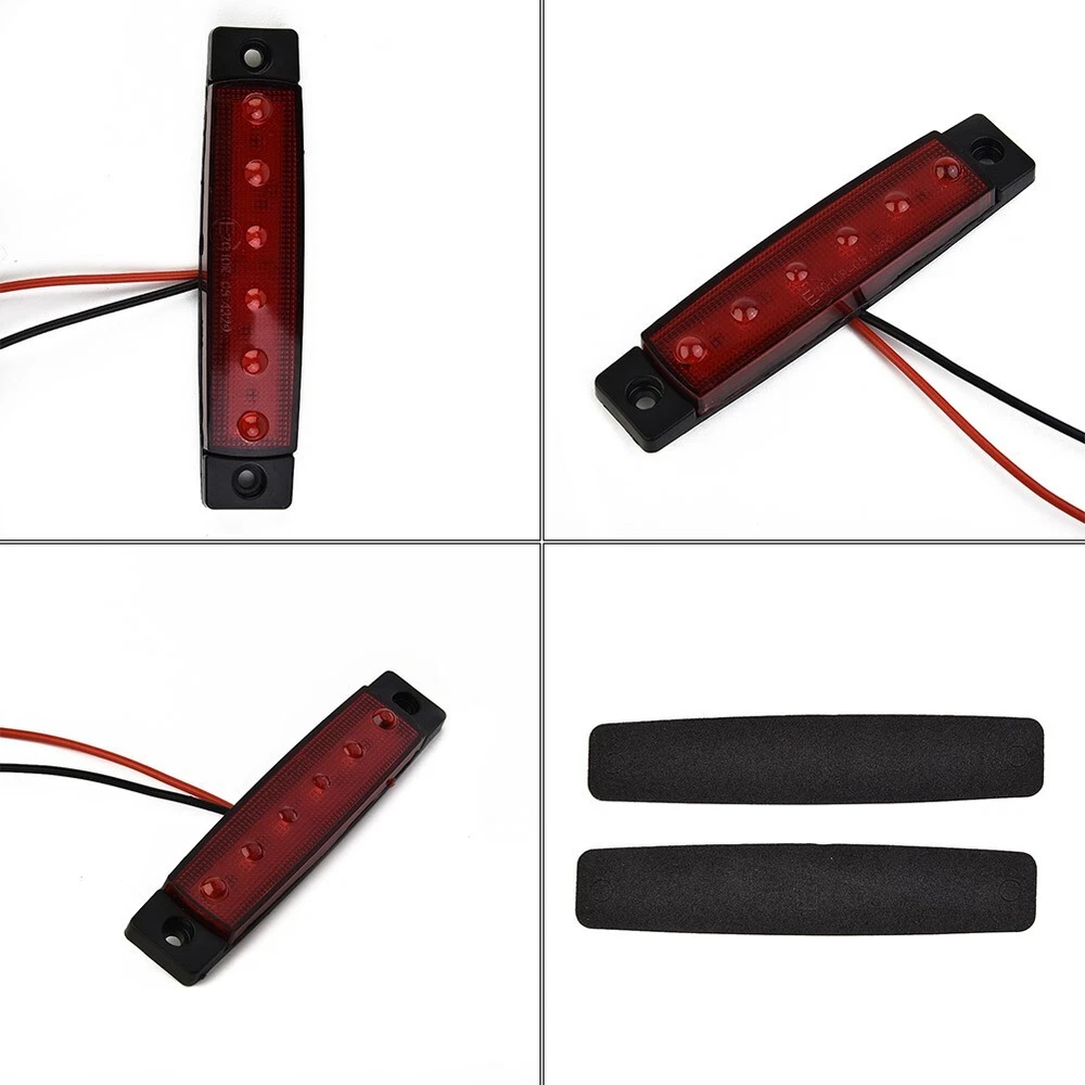 2Pcs 6LED Sealed Stop Turn Brake Tail Light Bar For Trailer Truck RV Side Marker DESCRIPTION Features: *6-LED red sealed waterproof tail lights for truck trailer RV boat *High quality & low power consumption *Uses high-quality double-sided panels, more stable performance *Easy to install and to use *Waterproof, reliable and safe *Comes with mounting screws *Can be used as side marker lights, tail lights, side lights *Applicable to most buses, trucks, trailers and vans Specifications: *Material: ABS *Color: Red (As Pictures Show) *Voltage: DC 12V *LED Quantity: 6 *Dimension: 100*20*8mm/3.9*0.8*0.3 inches (Approx.) *Holes Space: 8.3cm/3.27 inches (Approx.) *Cable Length: 28cm/11 inches (Approx.) *Quantity: 2pcs Package Contents: 2pcs Side Marker Lights with Mouting Screws Note: The real color of the item may be slightly different from the pictures shown on website caused by many factors such as brightness of your monitor and light brightness. POLICES Shipping Payment WARRANTY We only ship to confirmed Paypal addresses. Please comfirm that your paypal address is in line with your shipping address. Please kindly note that the c ombined shipping is not provided because the shipping fee is calculated by weight. Also, the each additional item means exactly the the same color and size. It takes about 7 -15 working days to US; about 10-30 working days to other countries. Transit time may be a little delayed because of the bad weather and customs inspection . If you do not receive your item within 30 working days since payment finished, please contact us immediately for further assistance. We accept payment via Paypal only. Payment must be made within 5 days, Non-payment may result in an UPI (Unpaid Item), eBay will automatically close your account if you accumulate 4 UPI's total. Import cutoms duties or taxes which are not included in item price, if any, are on buyer's responsibility. You can check with your local customs office for further information prior to bidding/buying. We strive for 100% customer satisfaction! Positive Feedback is very important to us. If you have any questions, p lease feel free to contact us via "Ask seller a question" . We will reply your email within 24 working hours.