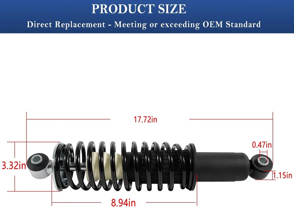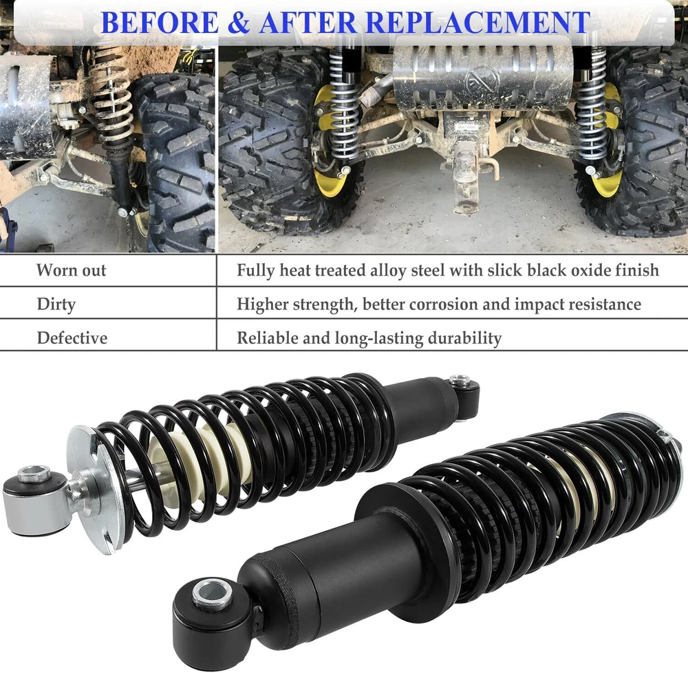 2Pcs AM135375 Rear Coil-over Spring Shocks Absorber for John Deere Gator HPX 4x4, Diesel, HPX 615E HPX 815E 2004-2020 2Pcs Rear Coil-over Spring Shocks Absorber Fits for John Deere Gator HPX 4x4, Diesel, HPX 615E HPX 815E 2004-2020, Rear Left & Right Shocks Struts Coil-over Spring Replacement for # AM135375 Great Compatibility: Fits for John Deere Gator HPX 2004-2017, for John Deere Gator HPX 615E, 815E 2018-2020, for John Deere Gator XUV620i 2007-2010, for John Deere Gator XUV850D 4x4 Diesel 2007-2010. What You Get: Package includes 2Pcs coil-over shock absorber for use on rear left and right strut (Replaces OEM# AM135375), manufactured and tested to meet original equipment standards and performance. Built to Last: Precisely machined from fully heat treated alloy steel with slick black oxide finish, higher strength, better corrosion and impact resistance, ensuring reliable and long-lasting durability. Easy to Use: The shock absorber is fully-assembled, including necessary parts required for replacement. No need for special tools. Payment Delivery details Terms of sales Returns Contact us Payment 1. All major credit cards are accepted through our secure payment processor Payoneer. 2. Please make sure your Shipping address is correct before you pay, cause it cannot be changed once the order shipped out. Delivery details 1. We only ship to confirmed ebay addresses. Your ebay address MUST MATCH your Shipping address. 2. Please read the shipment and payment detail carefully before you bid. Terms of sales ★If there are any problems with our products, Please feel free to contact us. We will always here to solve them for you. We should try our best to make a happy easy transaction. ★If you are satisfied with our products and our service, please tell your friend and leave us positive feedback. If you are not satisfied with our products or service, please DO tell us. Returns 100% Satisfaction Guarantee: Your satisfaction is our priority. We strive to give our customers excellent service.All our products support 60-Day money-back guarantee, 12-Month warranty for quality-related issues. Simply return it for your warranty. Contact us Any Questions,Just feel free to contact us on eBay.We will reply you in 1-2 business day.