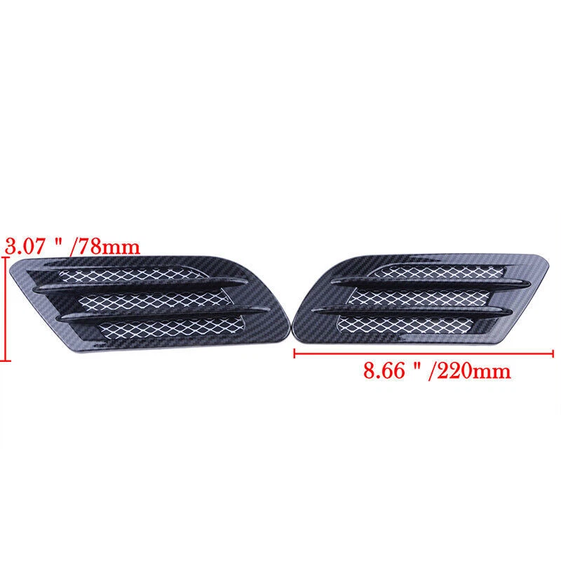 Product Description Features: 100% brand new and high quality Car Side Air Vent Fender Cover Hole Intake Duct Flow Grille Decoration Sticker Give your car a classy and customized look Weather Proof, never fade under any rigorous condition The design is novel, concision and beautiful Durable, classic, handy and beautiful Easy adhesive installation, no drilling required, just stick on desired place You can stick this on any part of car surface. This fast and easy decoration makes your vehicle stand out from others Specifications: Compatible: Universal fit for most cars and vehicles Material ABS Plastic Size: 17 x 8cm (approx) Color: Imitated Carbon Fiber Quantity: 1pair(2pcs) Notice: The vent only for decoration but not real air vent. Package includes: 2 pieces fender air vent Shipping Returns Contact Us 1. All our stock is located in China and all shipments will originate here. Your purchase will be shipped via standard airmail as soon as possible after payment clears except those custom products. 2. Import duties, taxes and charges are not included in the item price or shipping charges. These charges are the buyer responsibility.Please check with your country customs office to determine what these additional costs will be prior to bidding/buying. 3. A tracking No. is provided once the item is dispatched. Delivery normally takes 7-20 business days if it can go smoothly through customs. 4. We do not ship on holidays or weekends. 5. You need to contact your local post office or customs department in the following cases: Delivery mistake by the post office man Delayed shipping due to customs detention Delivery failure caused by wrong address 1. If you receive any damaged or defective items, we will exchange it as quickly as possible. 2. You must contact us within 7 days of delivery of the product to notify us of any defects. 3. You need to send a picture to prove the problems by using ebay's attaching files button 4. Items must be in original box and kept in good condition. 5. Buyer is responsible for return shipping cost if there isn't any problem with the product. No matter the item is free shipping or not, we pay money for the shipping.You need to cover the actual shipping cost provided by us. 1.Do not hesitate to contact us anytime before and after your purchase, we are committed to your 100% customer satisfaction. 2.I am here and ready to assist you with any questions or concerns you might have before or after the purchase. 3.My goal is to make sure you are a happy customer and pleasant shopping with us. Shipping 1. All our stock is located in China and all shipments will originate here. Your purchase will be shipped via standard airmail as soon as possible after payment clears except those custom products. 2. Import duties, taxes and charges are not included in the item price or shipping charges. These charges are the buyer responsibility.Please check with your country customs office to determine what these additional costs will be prior to bidding/buying. 3. A tracking No. is provided once the item is dispatched. Delivery normally takes 7-20 business days if it can go smoothly through customs. 4. We do not ship on holidays or weekends. 5. You need to contact your local post office or customs department in the following cases: Delivery mistake by the post office man Delayed shipping due to customs detention Delivery failure caused by wrong address Returns 1. If you receive any damaged or defective items, we will exchange it as quickly as possible. 2. You must contact us within 7 days of delivery of the product to notify us of any defects. 3. You need to send a picture to prove the problems by using ebay's attaching files button 4. Items must be in original box and kept in good condition. 5. Buyer is responsible for return shipping cost if there isn't any problem with the product. No matter the item is free shipping or not, we pay money for the shipping.You need to cover the actual shipping cost provided by us. Contact Us 1.Do not hesitate to contact us anytime before and after your purchase, we are committed to your 100% customer satisfaction. 2.I am here and ready to assist you with any questions or concerns you might have before or after the purchase. 3.My goal is to make sure you are a happy customer and pleasant shopping with us. You may also like For Benz GLA W156 2020-2023 ABS Carbon Fiber Window Lift Panel Switch Cover Trim 54.29 USD Free shipping For Hyundai Tucson 2022 2023 ABS Carbon Fiber Console Dashboard Frame Cover Trim 42.49 USD Free shipping For Cadillac Escalade 2007-2014 A/C Climate Control Button Repair Decals Sticker 12.09 USD Free shipping For Mitsubishi Outlander/4007/C-Crosser Car Stereo Radio Fascia Panel Trim 2 Din 72.19 USD Free shipping For Mitsubishi Montero 2003-2006 Rear Tail Light Stop Brake Turn Signal Fog Lamp 154.19 USD Free shipping Storage Cup Holder Center Panel Shifter Bezel Trim For Toyota For Camry 03-06 x1 198.29 USD Free shipping Car Carbon Fiber Vinyl Door Sill Scuff Cover Plate Sticker Protector Accessories 14.29 USD Free shipping Outer Right passenger Side Tail Light Brake Lamp For 2015-2017 Toyota Highlander 178.89 USD Free shipping For Cadillac CT4 2020-2024 Glossy Black Rear Tail Exhaust Muffler Tip Pipe Steel 57.49 USD Free shipping Car Seat Covers 5 Seats Front Rear Full Set PU Leather Protector Accessories 9pc 79.69 USD Free shipping Volume Knob Button Cover Sequins Trim For Mercedes-Benz C E Class W204 W212 GLK 12.1 USD 13.59 USD Free shipping 11% off LED Rear Tail Light For Hyundai Santa Fe 2007-2012 Turn Signal Light Brake Lamp 416.55 USD 507.99 USD Free shipping 18% off powered by
