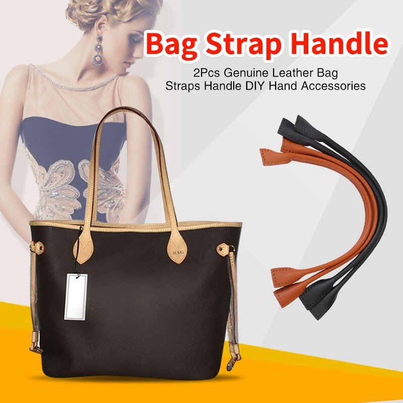 2Pcs Genuine Leather Bag Straps Handle for Hand Accessories Thread