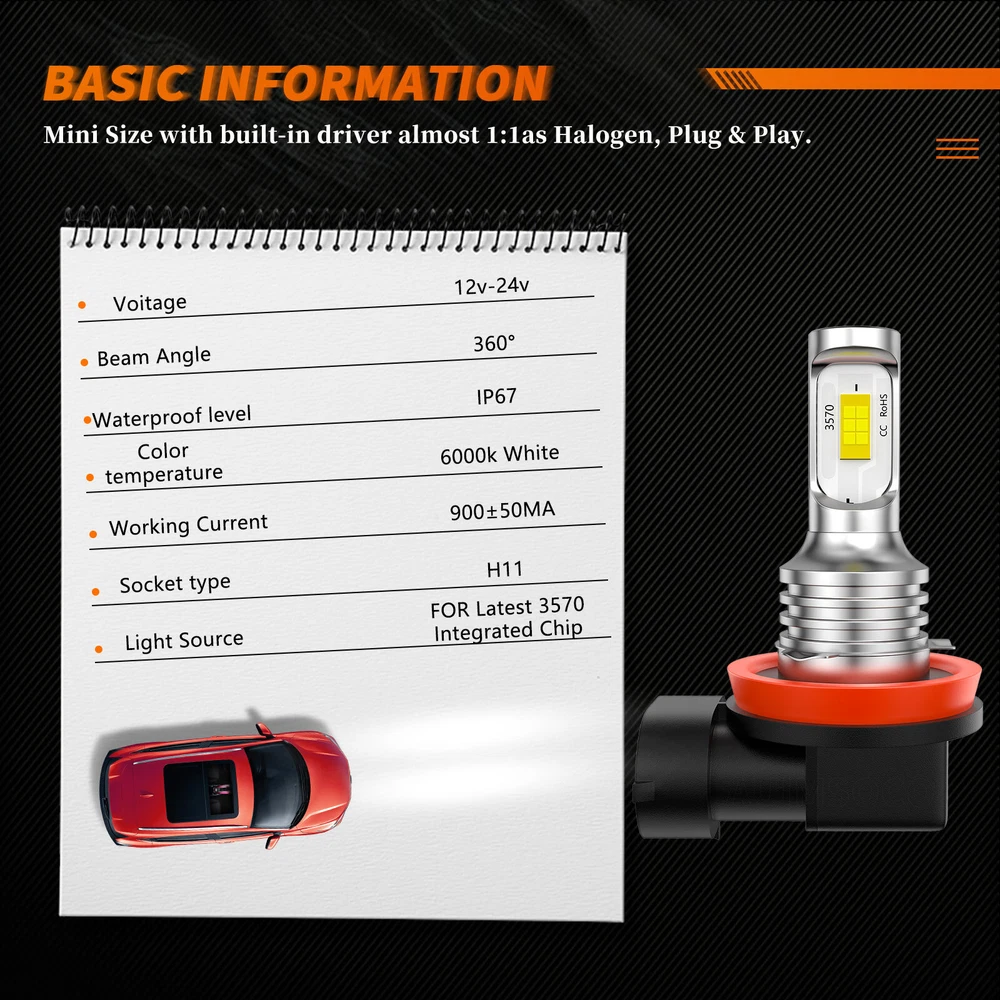 Home Payment Shipping About us Contact us Details NOTES: Compatible list can not show up all car model,it is only for reference. It may exist someting error for some car model because of the car upgradtion and car modification. So please make 100% sure before you purchase. Otherwise, we are not responsibe for this, thanks for your cooperations! Professional installation is highly recommended if you have any difficult in installation. About this item: 8 Minutes Installation: With the same size as the halogen bulb,makes it become one of the closest size of halogen bulb in the market. Plug and play, installing the AUIMSOCO H11 LED bulb is a breeze. 200% Brighter Than Halogen Lamps: H11 LED bulb set is equipped with 2 CSP chips, 6000K, showing modern cool white light, definitely brighter than traditional bulbs to see farther and wider during night driving. Compatible with 98% of Vehicles: Compatible with H11/H16/H8 LED fog lights bulb, and 98% of vehicles will not have Canbus errors. Please refer to your vehicle's user manual or search for ""car bulb finder"" to confirm the model. 50000+ Hours Lifespan: Built-in smart IC driver and Wind pressure resistance 6063 aluminum material bring superior cooling capacity, longer life, bid farewell to frequent replacement. Driving 4 hours a day, the life of the fog lamp is 20 years. Widely Used in Various Scenarios: Used for upgrading stock dim halogen / incandescent H8 H16 H11 fog light led or DRL. It can work well in rainy, snowy or foggy days to ensure you maintain a better driving experience in bad weather. Specifications: Model: H11/H8/H16 Position:Fog lights Voltage: DC12-18V Color: 6000K Cool White Lifespan: ≥50,000 Hours Waterproof Rate:IP67 Bulb Type:LED Wattage:200 watts Attention: Fog light or daytime running light only No high or low beam functions Not suited for headlights Packing included: One Pair of H11/H8/H9/H16 Fog lights New and old packaging will be shipped randomly Warm Tips: 1.Bulb size: H11, if the bulb size of your halogen headlight high beam(H9) or fog light(H8, H16), this H11 will fit directly, plug and play, they're the same as H11. 2.Due to the LED bulbs current is smaller than stock lamps, there may be situations that are incompatible with some European vehicle systems, in which case additional load resistors may be needed to avoid error codes or flashing problems. 3.Before placing an order, please carefully check your car owner's manual or original light bulb to confirm the correct model you need. 4.If you don't find your vehicle in this listing, please contact us with your vehicle's Make/model/year and other information which is helpful to check bulb type. Contact us: If the product is not suitable or there is a quality problem, please contact our customer service directly to solve the problem. We will give you a satisfact. Shipping Policy Payment Method Returns Policy Shipping Policy Payment Method Returns Policy Home Payment Shipping About us Contact us Store Categories Store Categories For Chevrolet For Ford For GMC For Ram For Dodge For Kia For Nissan For Sabaru For Acura For Buick For Cadillac For Honda For Jeep For Mazda For Mitsubishi For Toyota For Volkswagen For Volvo For Lexus Other Details NOTES: Compatible list can not show up all car model,it is only for reference. It may exist someting error for some car model because of the car upgradtion and car modification. So please make 100% sure before you purchase. Otherwise, we are not responsibe for this, thanks for your cooperations! Professional installation is highly recommended if you have any difficult in installation. About this item: 8 Minutes Installation: With the same size as the halogen bulb,makes it become one of the closest size of halogen bulb in the market. Plug and play, installing the AUIMSOCO H11 LED bulb is a breeze. 200% Brighter Than Halogen Lamps: H11 LED bulb set is equipped with 2 CSP chips, 6000K, showing modern cool white light, definitely brighter than traditional bulbs to see farther and wider during night driving. Compatible with 98% of Vehicles: Compatible with H11/H16/H8 LED fog lights bulb, and 98% of vehicles will not have Canbus errors. Please refer to your vehicle's user manual or search for ""car bulb finder"" to confirm the model. 50000+ Hours Lifespan: Built-in smart IC driver and Wind pressure resistance 6063 aluminum material bring superior cooling capacity, longer life, bid farewell to frequent replacement. Driving 4 hours a day, the life of the fog lamp is 20 years. Widely Used in Various Scenarios: Used for upgrading stock dim halogen / incandescent H8 H16 H11 fog light led or DRL. It can work well in rainy, snowy or foggy days to ensure you maintain a better driving experience in bad weather. Specifications: Model: H11/H8/H16 Position:Fog lights Voltage: DC12-18V Color: 6000K Cool White Lifespan: ≥50,000 Hours Waterproof Rate:IP67 Bulb Type:LED Wattage:200 watts Attention: Fog light or daytime running light only No high or low beam functions Not suited for headlights Packing included: One Pair of H11/H8/H9/H16 Fog lights New and old packaging will be shipped randomly Warm Tips: 1.Bulb size: H11, if the bulb size of your halogen headlight high beam(H9) or fog light(H8, H16), this H11 will fit directly, plug and play, they're the same as H11. 2.Due to the LED bulbs current is smaller than stock lamps, there may be situations that are incompatible with some European vehicle systems, in which case additional load resistors may be needed to avoid error codes or flashing problems. 3.Before placing an order, please carefully check your car owner's manual or original light bulb to confirm the correct model you need. 4.If you don't find your vehicle in this listing, please contact us with your vehicle's Make/model/year and other information which is helpful to check bulb type. Contact us: If the product is not suitable or there is a quality problem, please contact our customer service directly to solve the problem. We will give