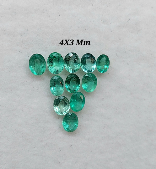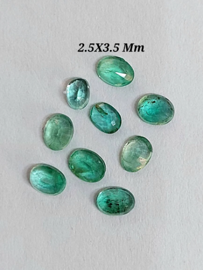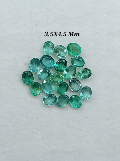 100 % Natural Emerald Faceted Oval Cut Gemstone Emerald Cut Stone Oval Shape Emerald Size : 2.5X3.5 Mm 3.5X4.5 Mm 4X3 Mm 5X3 Mm Origin-Zambia Piece : 2 Piece Code : 2055 Emerald is a crystal of the heart, alleviating heaviness in the emotional field and nourishing the aura with an energy of hope, encouragement, gentleness and abundance.It is a stone of regeneration and recovery, bringing in freshness and vitality.
