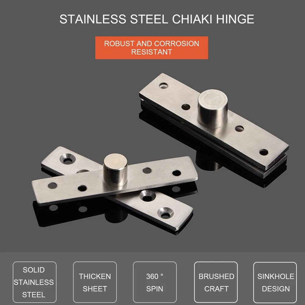 2Pcs Pivot Hinge Rotating Hinge 360 Degree Stainless Steel Concealing Hinges Doo