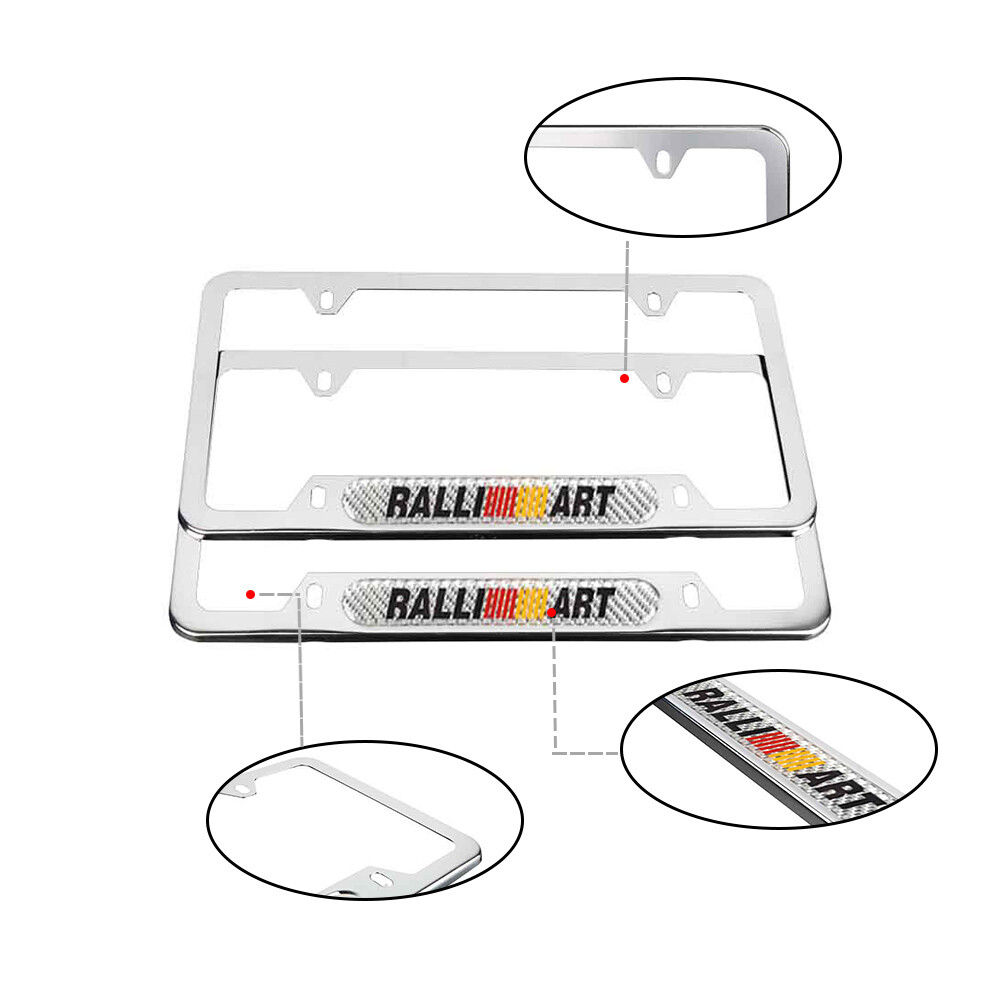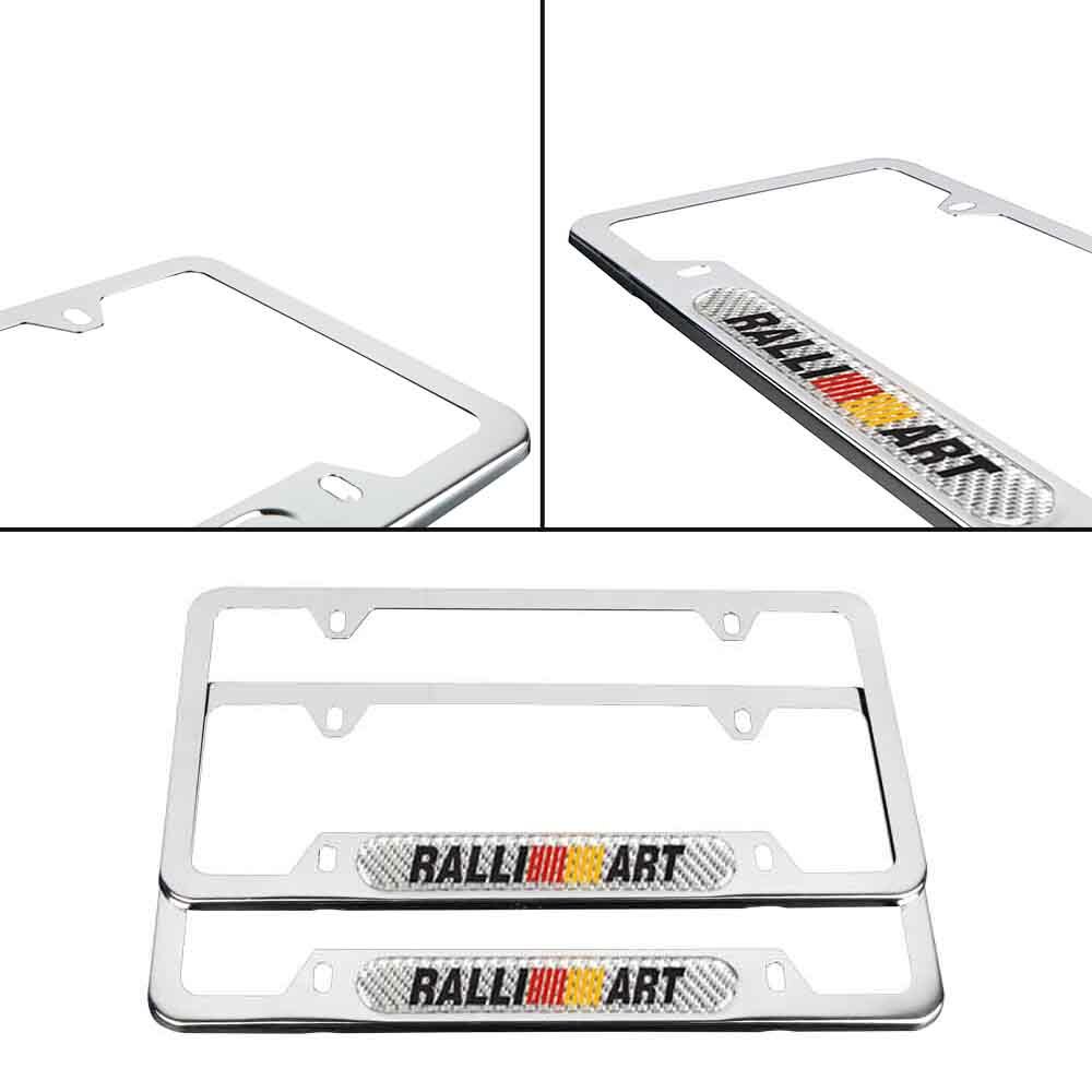 2Pcs Ralliart Chrome Stainless Steel License Plate Frame With Real Carbon Fiber Emblem For Mitsubishi USA TRUSTED SELLER !! FREE SAME DAY !! FAST SHIPPING !!! DESCRIPTION 100% Brand New and High Quality , Never Used or Installed Material : Metal Stainless Steel + Real Carbon Fiber Emblem Color : Chrome & Silver Emblem License Plate Size: 12.25" x 6.25" Emblem Measure: 5.5" x 0.78" (140mm x 20mm) Emblem Come with High Quality Adhesive Sticker Applicable models: UNIVERSAL FIT FOR MITSUBISHI CAR MODEL Installation : Direct Bolt-on Replacement. No Modification Required Exactly The Same As Picture Package includes: 2Pcs License Plate Frame ( 1 Pair )
