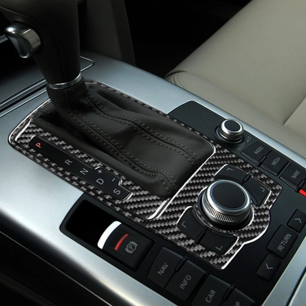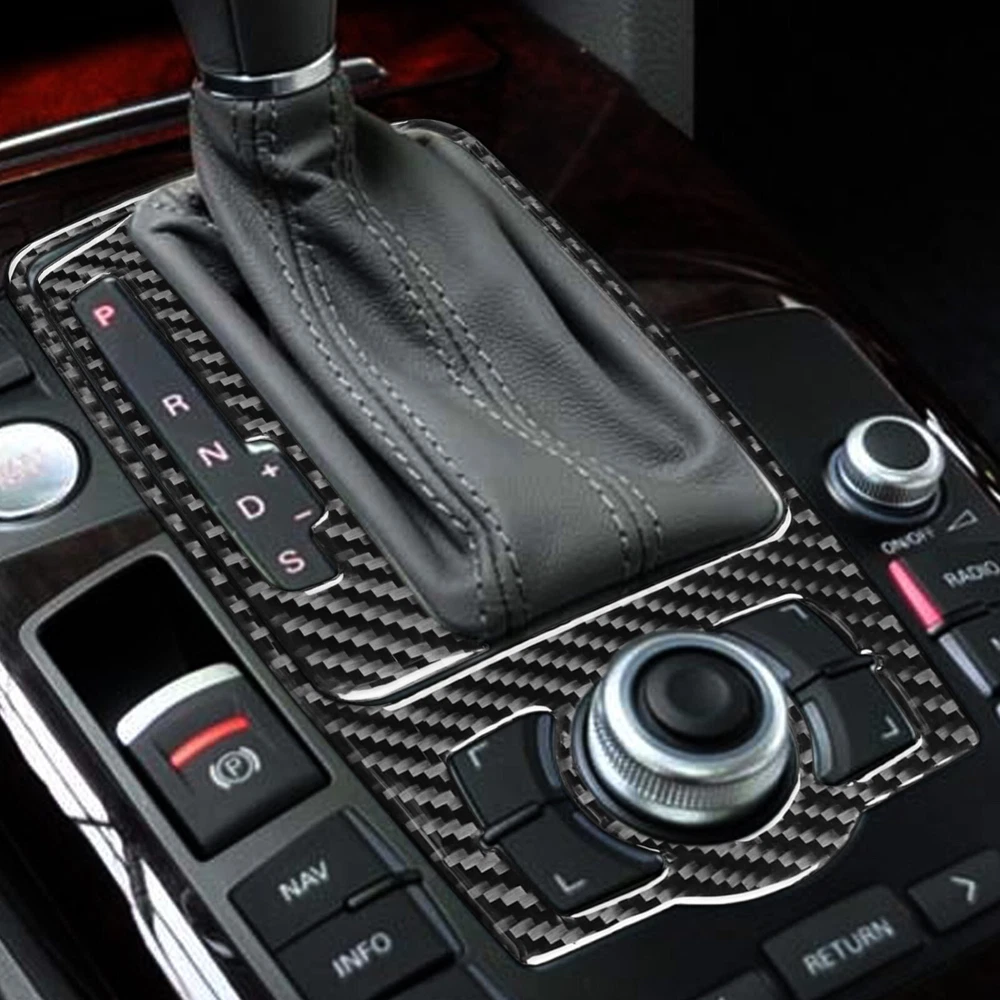 2Pcs Real Carbon Fiber Console Gear Shift Panel Trim For Audi A6 S6 C6 2005-2011