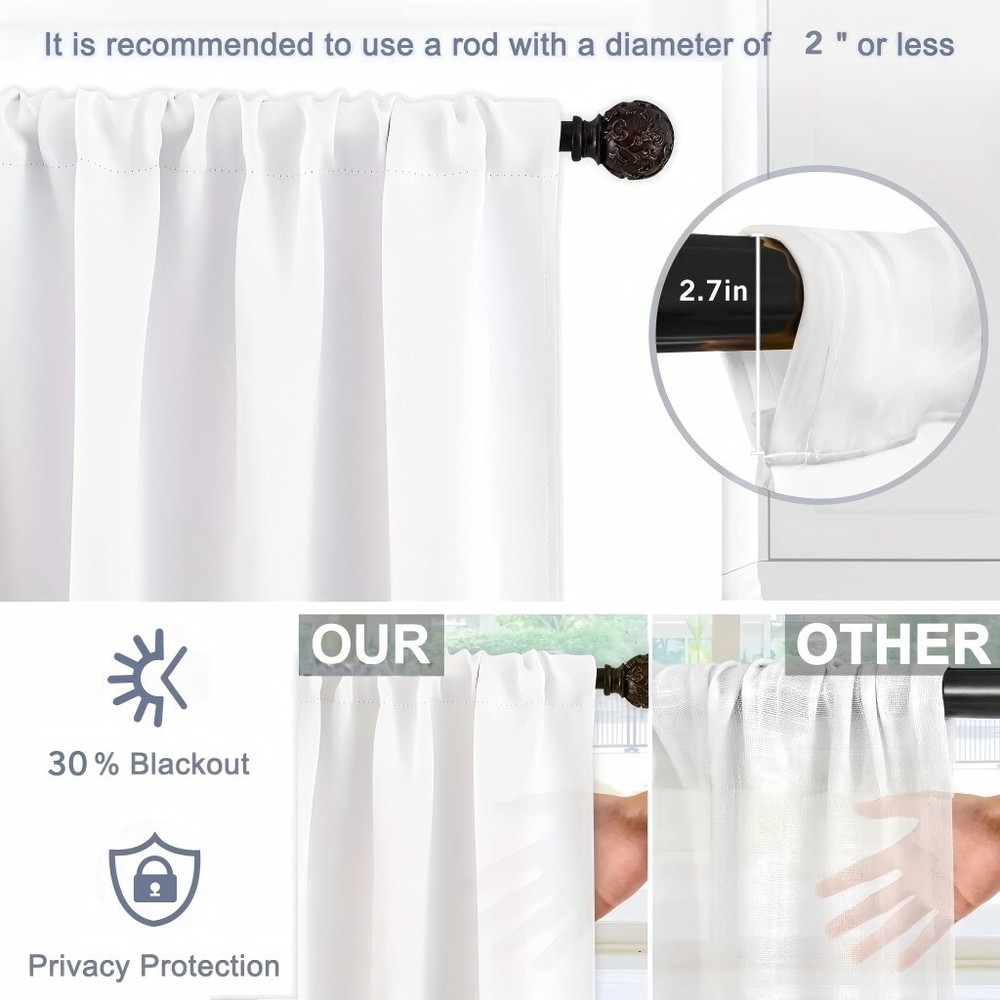尺寸:2片/套 29.5 英寸 * 65 英寸 * 2 件 (每块面板宽 29.5 英寸,高 65 英寸, 总宽 59 英寸, 高 65 英寸) 39.5 英寸 * 87 英寸 * 2 件 (每块面板宽 29.5 英寸,高 65 英寸, 总宽 79 英寸, 高 87 英寸) 包装包括 :成套出售,每个包装包括 2 个面板。 材质 :窗帘采用 100% 涤纶制成。滤光窗帘可阻挡强光以减弱房间内的光线,但同时保留足够的光线以照亮房间 悬挂方式 :杆袋内径约为 2.7 英寸,足够容纳市场上的大多数杆,从而可以轻松地沿杆移动窗帘 易于护理 :这些窗帘可机洗或冷水手洗。悬挂晾干,如有需要,可中温熨烫。请勿用尖锐物品刮擦窗帘布。