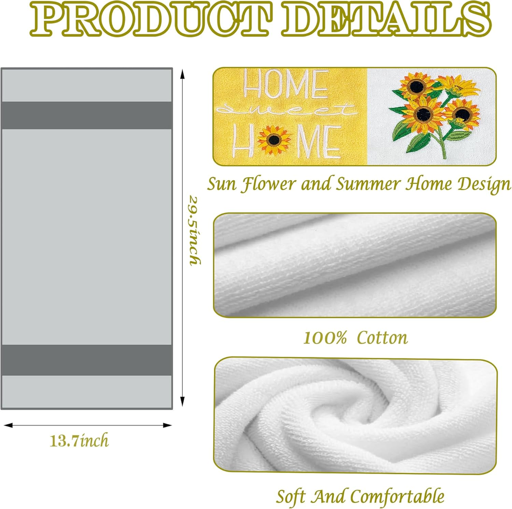 Store New Arrivals Add to Favorite View Feedback Contact 2 Pcs Sunflower Hand Towel 29.5 X 13.7 Inch Summer Home Sweet Decorative Bathroom Towels Embroidered 100% Cotton Soft Absorbent Towels for Bathroom Kitchen Decor (Yellow) Description Item model number hand towel Unit Count 2.0 Count Style Casual Special Feature Breathable Number of Items 2 Color Yellow Pattern summer Product Dimensions 29.5"L x 13.7"W Material Cotton Country of Origin China Fabric Type 100% Cotton Item Weight 10.8 ounces Theme Sunflower Towel form type Hand Towel Product Care Instructions Machine wash in cold or warm water with mild detergent. Do not bleach. Tumble dry low or air dry. Age Range (Description) Adult Model Name hand towel Target Audience Women Brand UHRMF Cartoon Character yellow Manufacturer UHRMF THE PACKAGE INCLUDES: 2 packs sunflower theme hand towels, with fresh design that makes them beautiful and practical accessories for cleaning and drying. SUMMER DESIGN: Our hand towels featuring summer theme, adopt embroidered design with Summer Sunflower elements and the home sweet home, vivid and fresh, will nicely increase the fun and pleasant atmosphere. PROPER SIZE: Each bathroom towels measures about 29.5 x 13.7 inch, an appropriate size for drying, cleaning, cooking and many other daily uses DURABLE MATERIAL: Made of quality cotton material, soft and absorbent, sturdy and reusable, machine washable and can be dried, with a long service time, these towels will not scratch your hands, face, body, etc.. WIDE APPLICATION: Our embroidered cotton towels can be applied in various occasions, suitable for bathroom, kitchen, party, etc., perfect for giving to your family and friends on housewarming, Christmas, winter holiday and other special occasions, offering convenience for your guests Ideal for gifting: Given their quality material and summer themed design, these coquette bathroom decor towels make for warm and thoughtful gifts. This item is the ideal choice for a holiday present or a housewarming gift, as it combines utility, durability, and the festive charms. Aesthetically pleasing color: Adorned in an array of attractive summer shades,these embroidered summer towel gift can seamlessly match numerous bathroom decors. Their vibrant color adds a stylish hint to your bathroom, serving not just a utilitarian purpose, but also one of aesthetic appeal Specifications: Material: cotton Size: 13.78 x 29.53 inches/ 35 x 75 cm Package includes: 2 x Hand Towel Notes: Manual measurement, please allow slight errors on size. The color may exist a slight difference due to different screen displays. ABOUT US We offer the best prices around on high quality products. Our E-store includes media such as books, movies, music and games while offering electronics, toys, sporting apparel, clothing, tools, general home, garden items and more. SHIPPING We are always working hard to ensure your package arrives as soon as possible. Please understand that some factors like weather, high postal traffic, and the performance of shipping companies are outside of our control. We offer free shipping to the lower 48 states and ship within 2 business days of payment, usually sooner. We do not accept P.O. Boxes. Please provide a physical address. RETURNS We offer a 30-Day Return Policy on items which you are not completely satisfied with. You have the option for a full-refund or an exchange of the item. No returns are available on items shipped outside of the USA. PAYMENT We accept PayPal. CONTACT US This page content is yet to come Please ad us to your favorite seller and visit again later Thank You CUSTOMER SATISFACTION We try our very best to make sure every customer is completely satisfied. If there's a problem, message us! We're happy to help.