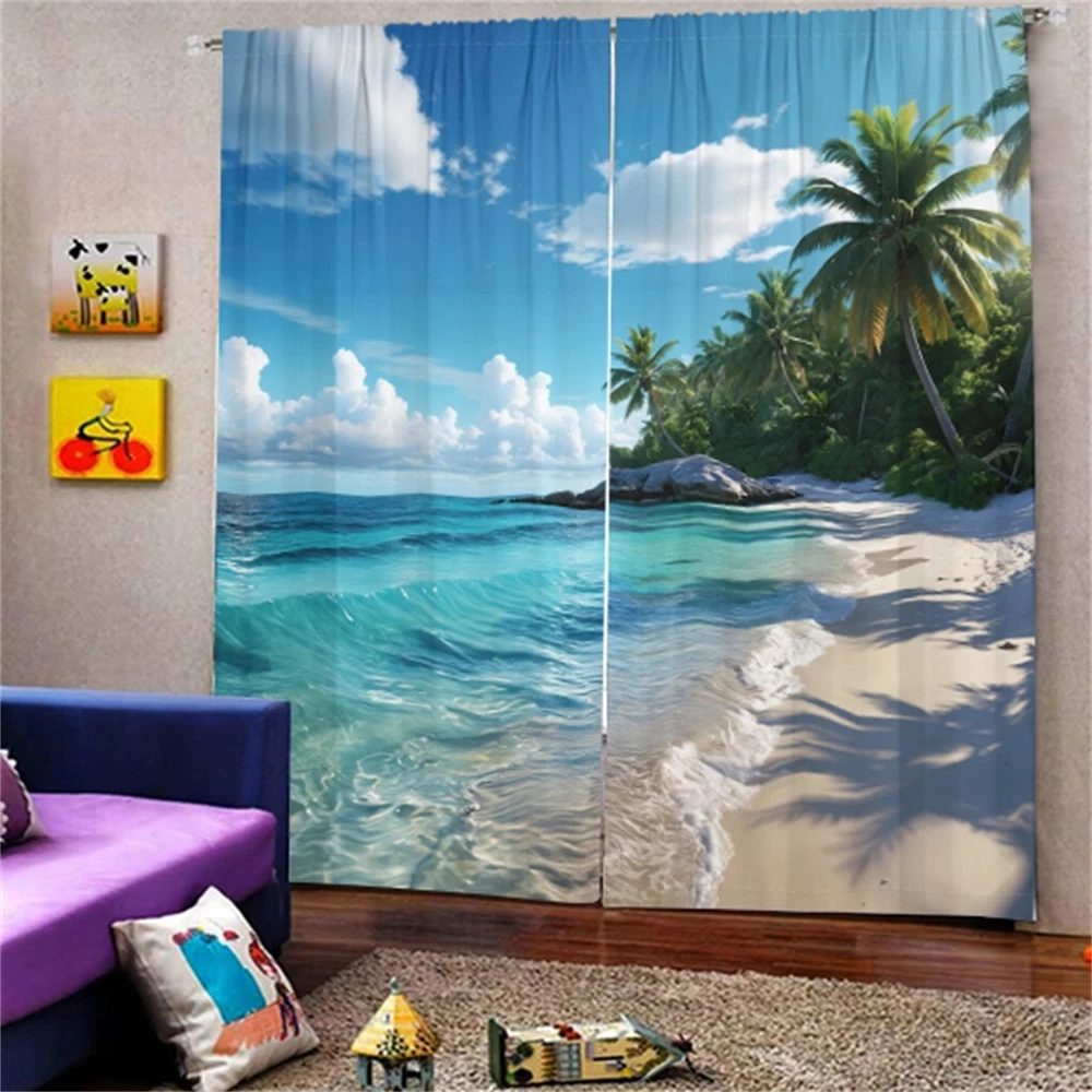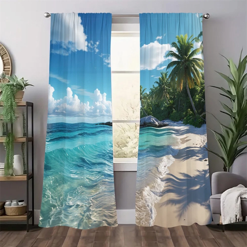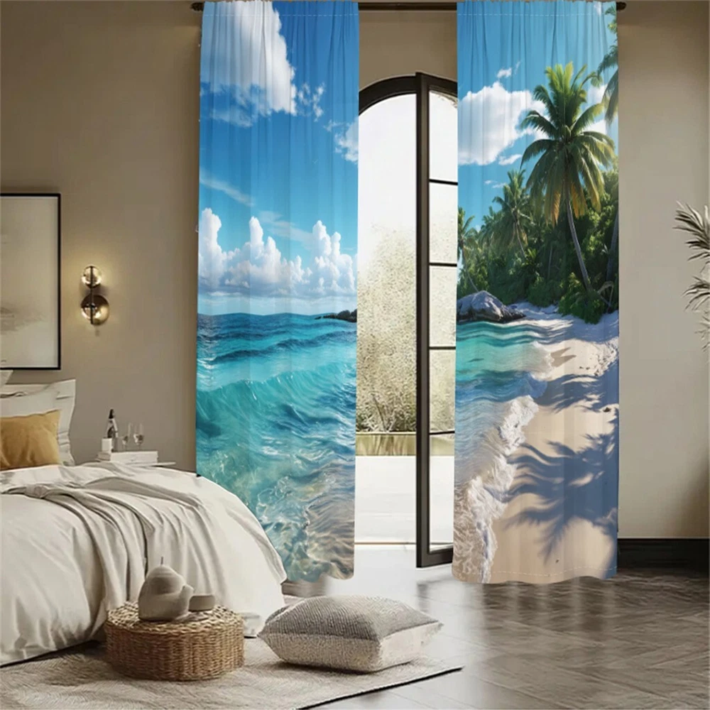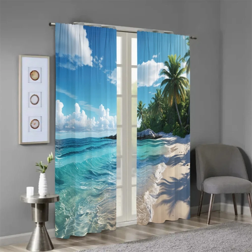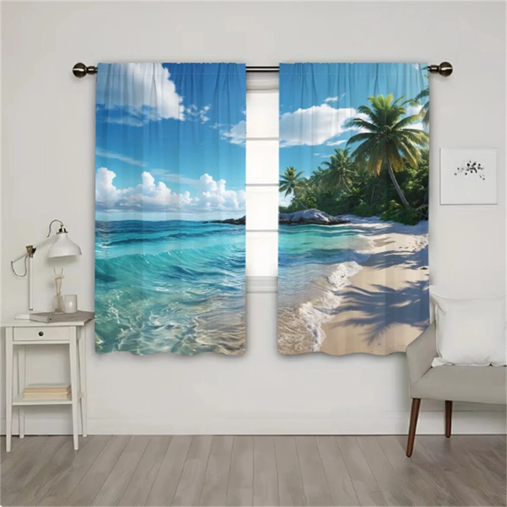 2Pcs Sunset Beach Palm Tree Curtains Ocean View Drapes for Bedroom Living Room