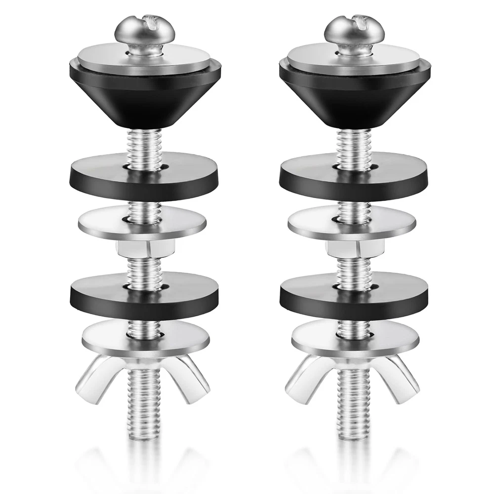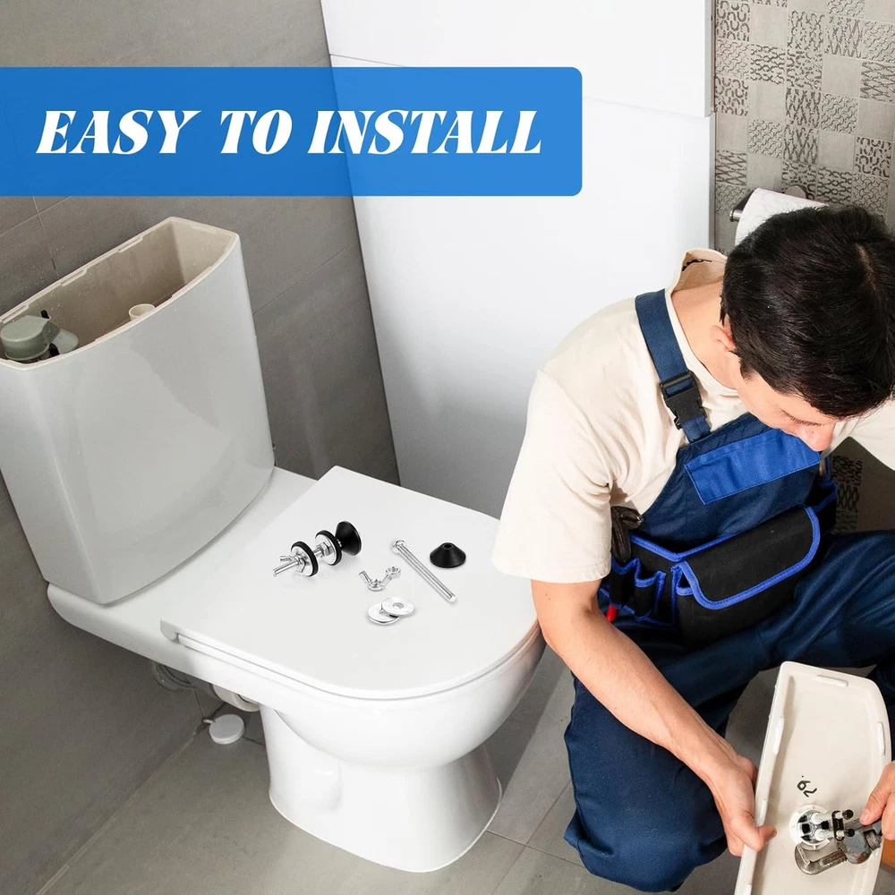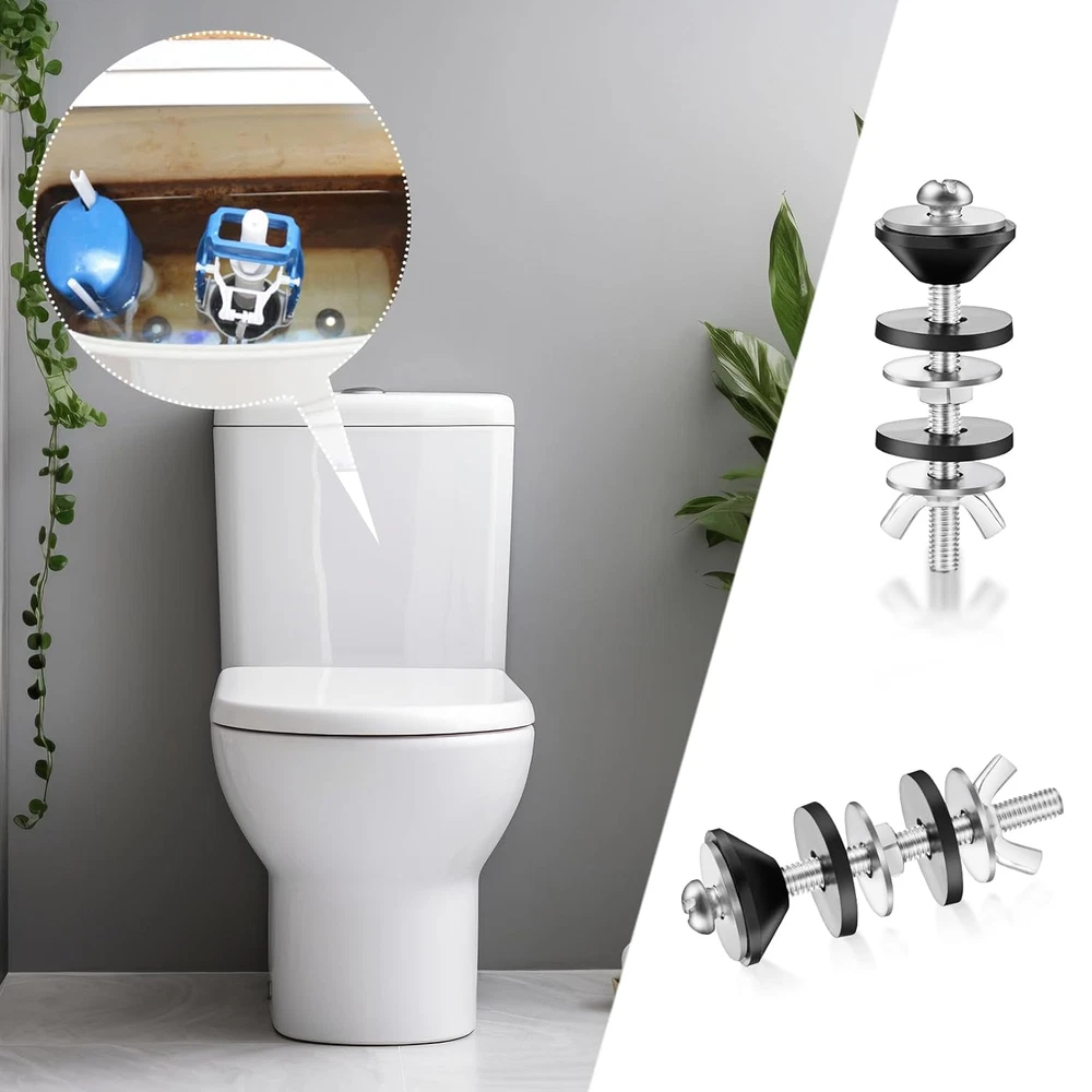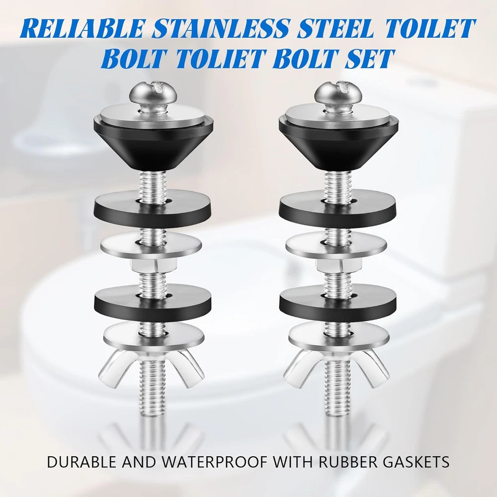 【Detailed dimensions】: Stainless steel bolt: 2.8 inches, 0.4 inches in diameter. Butterfly nut length: 0.87 inches, flat spacer diameter: 0.87 inches, hex nut diameter: 0.4 inches, rubber gasket diameter: 0.98 inches, tapered spacer diameter: 0.98 inches. Choose the toilet tank bolt kit that meets your needs. 【Reliable Material】: Our toilet bolts, nuts and metal washers are made of high quality stainless steel, corrosion and rust resistant, not easy to break or deform. The black washer is made of rubber, waterproof and good sealing. 【How to use】: It can be easily and quickly installed or removed with some simple tools. You just need to install it with a screwdriver, just remove the damaged bolt and install the new one. 【Packing List】:Our 2 Piece Heavy Duty Toilet Bolt Kit, including matching stainless steel bolts, washers and nuts, rubber washers. Sufficient quantity to meet your replacement and usage needs. 【Multi-function】:Our Universal Toilet Tank to Bowl Bolts Kit, it works for most standard toilets, the heavy duty bolts prevent shifting or moving with better stability, two different rubber washers securely seal the toilet tank to the toilet bowl, preventing leaks and protecting toilet parts from damage. Specification Name :2pcs toilet tank fixing screws Color :Silver + Black Material :Stainless steel + rubber Size : Stainless steel bolt length*diameter 7*1cm/ 2.8*0.4inch Rubber gasket diameter 2.5cm/0.98inch Flat spacer diameter: 2.2cm/0.87inch Hexagonal nut length 1cm/0.4inch Butterfly nut fixing knob length: 2.2cm/0.87inch Tapered spacer diameter: 2.5cm/0.98inch Installation Procedure 1、Interior of the tank:Compression cone seal is used to prevent water leakage inside the tank. 2、Bottom of the tank: the tank and bowl are connected with flat washers, hexagonal nuts and rubber washers. 3、Bowl bottom: fixed with rubber washer, flat washer and lock nut.