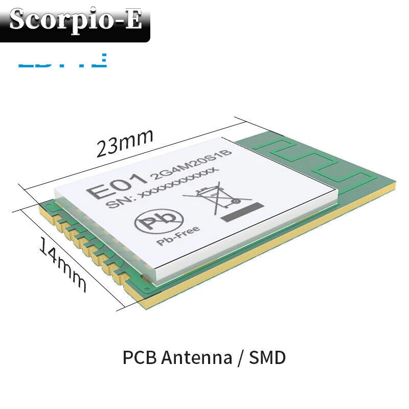 Memory Size: 8 kbit gtin13: Does not apply Maximum Operating Temperature: 80 °C (176 °F) UPC: Does not apply Mounting Style: Bracket Mount Custom Bundle: No Model: E01-2G4M20S1B MPN: Does Not Apply Country/Region of Manufacture: China Minimum Operating Temperature: -40 °C (-40 °F) Number of Pins: 1 Number of I/Os: 1 Interface Type: 1-Wire Type: Transceiver Module Brand: Peakelect Modified Item: No