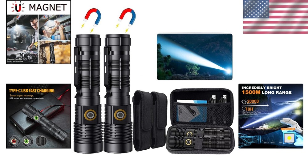 2-Piece 20000-Lumen Rechargeable Waterproof LED Flashlight Set with Mag-Safe