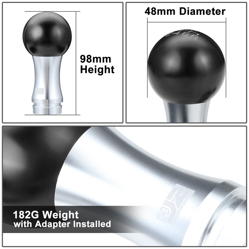 Welcome to our eBay store DPT Motorsport Business Hours: Monday - Friday, 9 AM to 6 PM PST. Store Home Payment Shipping Returns Need Help Add to Favorites About Us 2-Piece 48mm 6-Speed MT Aluminum Black Silver Shift Knob+Adapter-J2 Engineering Product Description Weighted Shift Knobs help promote smoother and more positive feeling shifts. Our shift knobs is made from billet aluminum with a anodized finish. Made with High Quality Billet Aluminum for Enhanced Strength and Durability Adapters to fit M8, M10, M12 shifters. Adapters are blank and use your shifter threads to tap a thread onto it Replaces Factory Shift Knob 182g Total Weight with Thread Adapter Installed 98mm Tall 48mm Diameter Anodized Finish with J2 Logo 6-Speed Indicator Pattern with Reverse Position on bottom Right 2-Piece Ball Teardrop Style Shift Knob 2-Piece Design allows for the ball section to unscrew from the shaft. Hollow interior for discreet storage of small items. Includes: 1 X Shift Knob Set of 3 Thread Adapters Notes: Compatible with: Fits 6-Speed Manual Transmission Vehicles that use M8, M10, M12 Shifter with Reverse Indicator on Bottom Right Position 100% Brand New Professional Installation is Highly Recommended Installation Instruction is NOT Included About Us Payment Shipping Returns Feedback Contact Us Have any questions or need info about something you already purchased? We'd love to hear from you! For items already purchased, please kindly include your eBay item number for faster response time. DPT Motorsport operates from Monday through Friday, 10 am to 6 pm (PST). ATTENTION: We are closed on Saturdays and Sundays. All messages will be replied in the order it was received during business days Thank you for choosing DPT Motorsport and happy bidding! We accept PayPal only. We reserve the right to file Non-Paying Bidder if payment is not received 10 days after the auction ended. Shipping Methods All shipments are made via either UPS or United States Postal Service depending on the types of products purchased. Majority of our orders will be ship within 2 business days (mostly within 24hrs) (All mail transit time stated above is best estimated but not guaranteed.) All shipments requires physical addresses, no PO Box address will be shipped. Shipping and handling charges are not negotiable. Return Policy **We stand behind the products we sell. If for any reason you are not satisfied with your purchase, we'll be happy to process a refund the product less S&H within 30 Days of your purchase. All return items will require a RMA number, which is given by our Customer Service Department only. Please allow 10-14 days for returns and exchange to be process. Please inspect all your order(s) upon receipt. All return items MUST be in brand new condition which means the item is never installed and kept in the original packaging. We will not reship replacement(s) before we get a claim approval for the lost or stolen item(s) or the returned item from customers. In most cases, all shipping and handling fees are non-refundable, unless it has been approved by our Customer Service Department. Any item(s) that the buyer states as defective will be tested by our Returns Department, if there is no problems or errors found during testing. Once the RMA# is issued, the buyer will have 30 days to return the item, if any items that is return after 30 days, the item(s) are subject for rejection. All items are brand new unless otherwise stated. PROFESSIONAL installation is highly recommended. Buyer assumes all risk on usage. About Us Have any questions or need info about something you already purchased? We'd love to hear from you! For items already purchased, please kindly include your eBay item number for faster response time. DPT Motorsport operates from Monday through Friday, 10 am to 6 pm (PST). ATTENTION: We are closed on Saturdays and Sundays. All messages will be replied in the order it was received during business days Thank you for choosing DPT Motorsport and happy bidding! Payment We accept PayPal only. We reserve the right to file Non-Paying Bidder if payment is not received 10 days after the auction ended. Shipping Shipping Methods All shipments are made via either UPS or United States Postal Service depending on the types of products purchased. Majority of our orders will be ship within 2 business days (mostly within 24hrs) (All mail transit time stated above is best estimated but not guaranteed.) All shipments requires physical addresses, no PO Box address will be shipped. Shipping and handling charges are not negotiable. Returns >Return Policy **We stand behind the products we sell. If for any reason you are not satisfied with your purchase, we'll be happy to process an exchange or refund the product less S&H within 30 Days of your purchase. All return items will require a RMA number, which is given by our Customer Service Department only. Please allow 10-14 days for returns and exchange to be process. Please inspect all your order(s) upon receipt. All return items MUST be in brand new condition which means the item is never installed and kept in the original packaging, otherwise you will be subjected to a 20% restocking fee. We will not reship replacement(s) before we get a claim approval for the lost or stolen item(s) or the returned item from customers. In most cases, all shipping and handling fees are non-refundable, unless it has been approved by our Customer Service Department. Any item(s) that the buyer states as defective will be tested by our Returns Department, if there is no problems or errors found during testing, there will be a mandatory 20% restocking fee for the price of the item. Once the RMA# is issued, the buyer will have 30 days to return the item, if any items that is return after 30 days, the item(s) are subject for rejection. If the items are returned without an RMA#, we reserve the rights to reject the item or charge the buyer a 20% restocking fee. All items are brand new unless otherwise stated. P