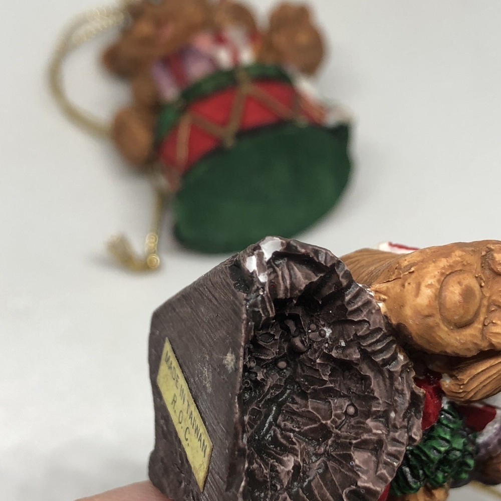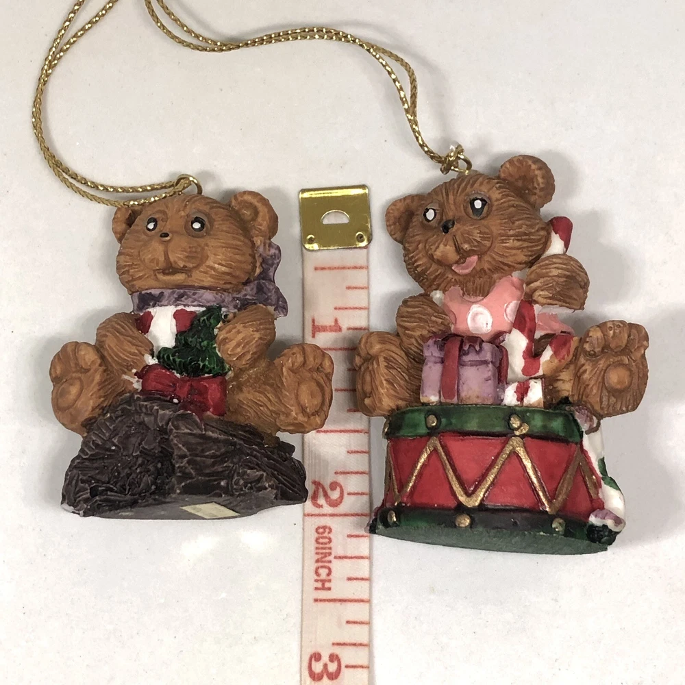 1. These adorable bear ornaments are the perfect festive touch! The resin details are charming, with one bear on a drum and the other on a log next to a tiny tree. Even with the small nick (clearly shown in pics), they’re still super cute and great for gifting or adding holiday cheer to your tree!