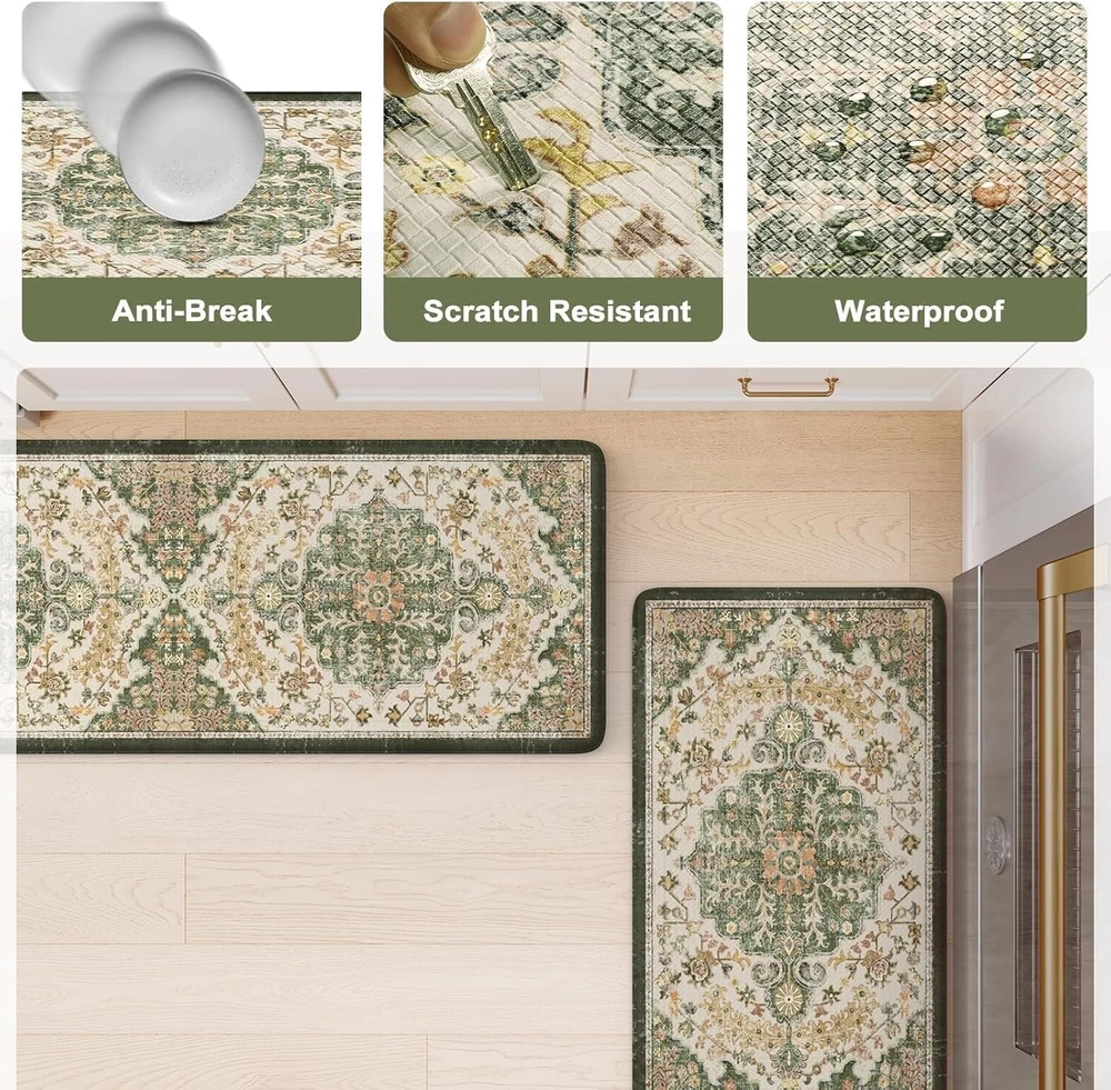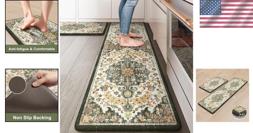 2-Piece Cushioned Kitchen Rugs Set - Anti-Fatigue, Waterproof, Floral Boho Style ‹ › ‹ › ‹ › ‹ › ‹ › ‹ › ‹ › ‹ › ‹ › ‹ › ‹ › 2-Piece Cushioned Kitchen Rugs Set - Anti-Fatigue, Waterproof, Floral Boho Style Features: Constructed with a luxurious 0.47 inch (12mm) thick memory foam center for superior comfort. Includes 2 rectangular mats: 17 x 59 inches and 17 x 29 inches, designed for versatile placement. Made from eco-friendly materials that are phthalate-free, latex-free, and odor-free. Padded non-slip bottom ensures stability and safety on both hard surfaces and carpets. Beveled edges help prevent tripping, providing full protection for you and your loved ones. Waterproof, oilproof, and stain-resistant for effortless maintenance. Boho style design features a central medallion and floral motifs to enhance your kitchen decor. Benefits: Ultimate comfort for feet, back, and legs while reducing fatigue during long periods of standing. Easy to clean – simply wipe with a damp cloth or use a hand-held vacuum for quick maintenance. Versatile use in high-traffic areas: kitchen, laundry room, office, bathroom, and dining room. Enhances the aesthetic appeal of your home with its stylish floral design. Why choose our Cushioned Kitchen Rugs Set? Transform your kitchen experience with our 2-Piece Cushioned Kitchen Rugs Set, specifically designed to provide unparalleled comfort and safety. The ergonomic anti-fatigue memory foam allows you to stand longer without discomfort, making your cooking and daily tasks feel effortless. With a stylish boho design to match any decor, these mats not only support your feet but also elevate the elegance of your home. Invest in comfort, style, and safety in your home today - order your Cushioned Kitchen Rugs Set now! Shipping Free & Fast Shipping - We offer free shipping to most of the USA with a normal delivery time of 3-7 days. However, due to the current situation, additional delivery time (up to 3 weeks) may be required for some items. Alternative Carriers - We may use alternative carriers (e.g. USPS, FedEx, UPS, etc.) to ensure your package arrives safely and on time. Due to the use of multiple carriers, we are unable to provide a tracking number automatically. Handling Time - Orders are processed and shipped within 1-2 business days of receiving cleared payment. Shipping Restrictions - Shipping to Alaska, Hawaii, Puerto Rico, Guam, and other US territories may incur shipping charges or delivery restrictions. Please contact us before ordering, or your order can be refunded/cancelled. State Restrictions - There may be restrictions based on your state of purchase. For example, certain items may not be shipped to California due to state regulations. Contact for Tracking Updates - If you require tracking updates or have any concerns about the delivery of your order, please feel free to contact us, and we will be happy to assist you. Return 30-Day Hassle-Free Returns - We want you to be completely satisfied with your purchase. If you are not, you can return the item within 30 days of receiving it for a full refund or exchange. Easy Return Process - To start a return, simply contact us and we will provide you with a prepaid return shipping label and detailed instructions. Restocking Fee - There are no restocking fees for returns. However, the buyer is responsible for return shipping costs if the return is not due to a seller's error. Refund Processing Time - Refunds will be processed within 5 business days of receiving the returned item in its original condition. Payment We accept all major credit cards, PayPal, and Apple Pay for your convenience. Your payment information is secure and encrypted to ensure a safe and seamless transaction. Please complete your payment within 3 days of purchase to avoid any delays in shipping. Feedback Your feedback is extremely important to us. We strive to provide the best products and customer service possible. If you are satisfied with your purchase, please take a moment to leave us a positive review. If you have any concerns or issues with your order, please contact us before leaving negative feedback. We are committed to resolving any problems and ensuring your satisfaction. Contact Us If you have any questions or concerns, please feel free to reach out to our customer support team. You can contact us through the eBay messaging system. We are available Monday to Friday, 9:00 am to 5:00 pm EST, and we will do our best to respond to your inquiry within 24 hours. Buy it now and enjoy a pleasant shopping experience! UPC: Not Set Unit Quantity: 5.96 Room: Kitchen Material: PVC,Rubber Features: Non-Slip,Stain Resistant,Waterproof Department: Adults Theme: Floral Brand: Unbranded Type: Rug Color: Green/Yellow Pattern: Floral Shape: Rectangle Item Width: Not Set Item Length: Not Set MPN: Not Set Model: Not Set Size: 17.3 in x 59 in Style: Boho Pile Height: 0.47 Regional Design: Not Set Country/Region of Manufacture: Not Set Pile Type: Normal Weave: Machine-Woven Era: 21st Century (2000-Now) Unit Type: lb Personalize: Not Set Personalized: Not Set