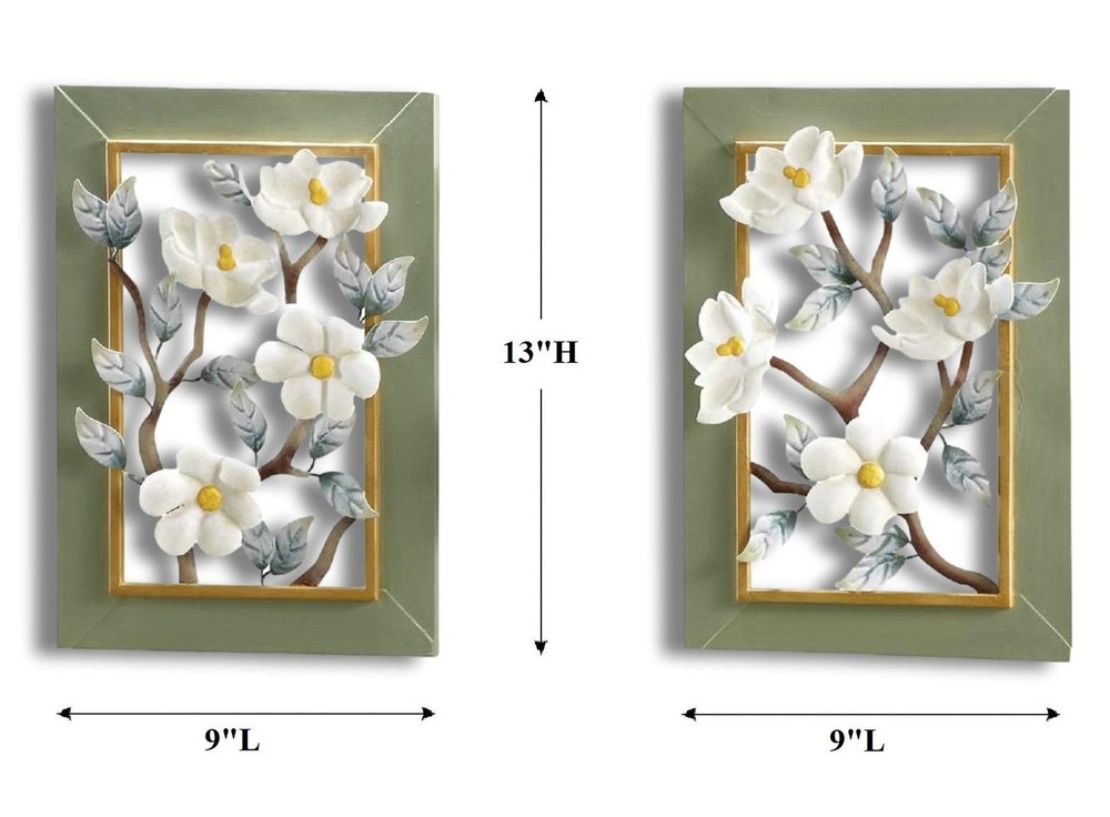Mounting: Wall Mounted Item Height: 13 in (each) Personalize: No Custom Bundle: No Department: Adults Shape: Rectangle Features: 3D Effect, Decorative, Framed, Indoor, Open Work Design, Hook On Back For Easy Hanging, Hand-Painted With Intricate Details Country/Region of Manufacture: Unknown Material: Metal Engraved: No Character Family: Decorative Accessories Character: Magnolia Flowers, Flowers Pattern: Pictorial Care Instructions: Easy Care Customized: No Item Length: 9 in (each) Bundle Description: 2 Pieces Battery Type: None Finish: Hand Painted Color: White Yellow Orientation: Vertical Theme: Flowers, Trees & Forest, Spring, Summer, Magnolias MPN: AS-I6039 Additional Parts Required: No Type: Wall Decorations gtin13: 603305306732 Subject: Flowers Brand: CE-AS Style: Contemporary UPC: 603305306732 Room: Any Room, Indoor Handmade: No Size: Medium Vintage: No