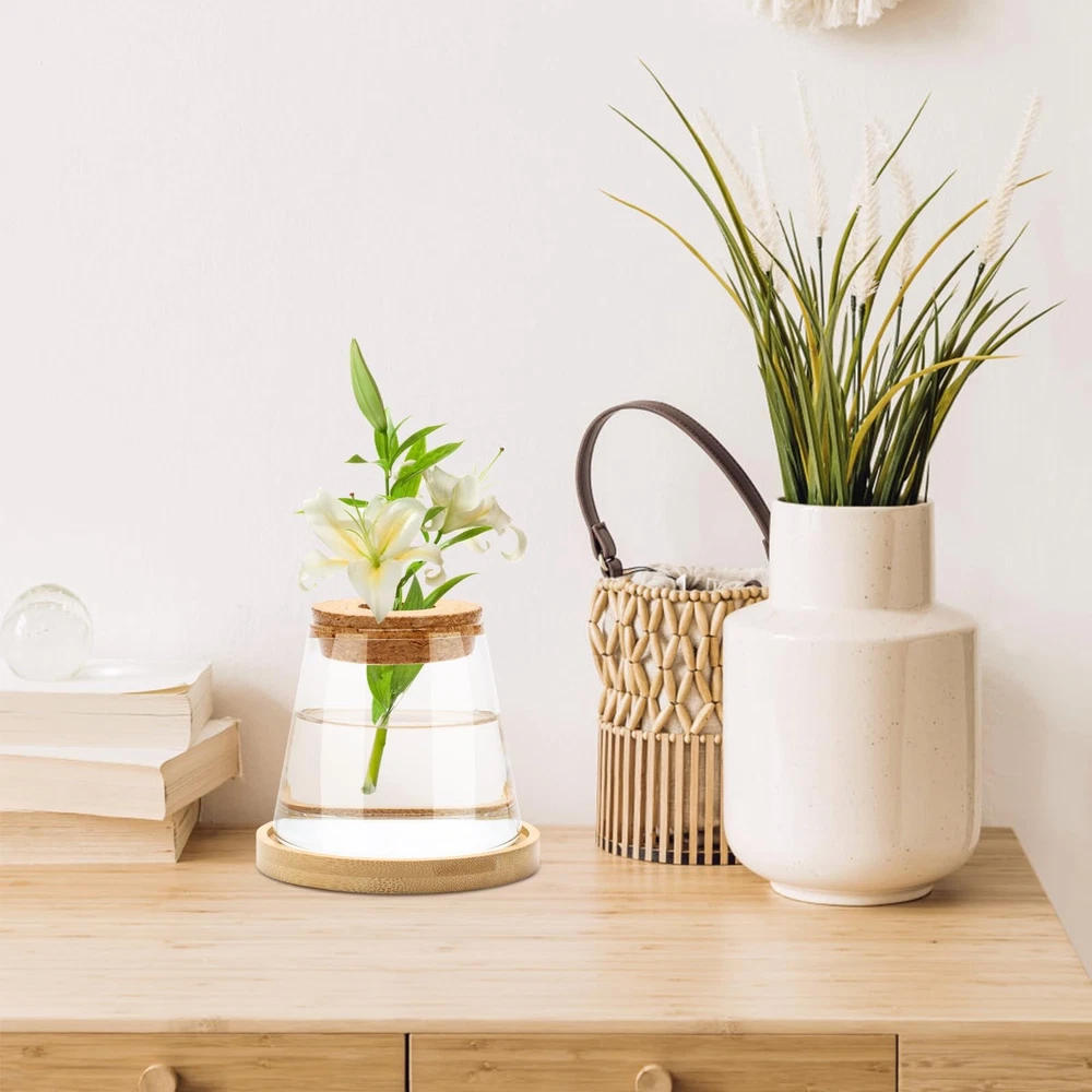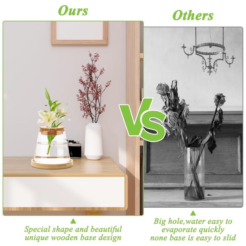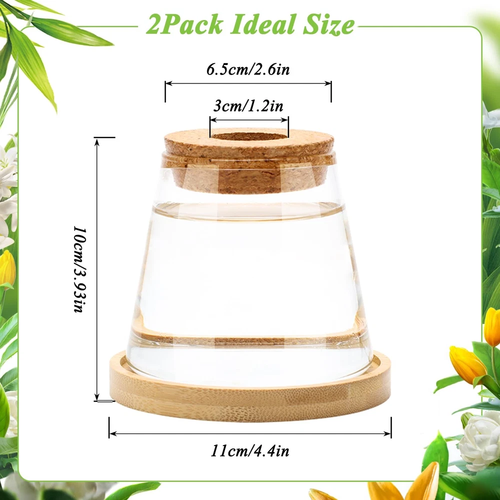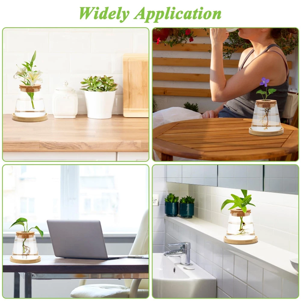 These terrarium propagation glass planter stations are suitable as decoration for your office, window, balcony, counter, bookshelf, desktop, dining table, etc, adding a refreshing touch. Premium Glass Material:The 2 Pcs plants propagation station are made of premium quality boron silicon heat resistant high-transparent glass.Clear propagating jars can show growing of roots,allows you to observe the growth of your plants. Wooden base can keep the plant propagating station is stable on the table. Tight solid wood cover with hole help to keep plants prevent water from evaporating quickly, help plants efficiency to grow up. Special Design:Hydroponics plant terrarium with special shape and beautiful, unique wooden base design ,Tight solid wood cover with hole help to keep plants prevent water from evaporating quickly, help plants efficiency to grow up. Various Occasions Decor:These terrarium propagation glass planter stations are suitable as decoration for your office, window, balcony, counter, bookshelf, desktop, dining table, etc, adding a refreshing touch. Easy Planting:Perfect for various plants,African violets, lucky bamboo, freshly flowers, mixed bouquets, water rooted plants or live houseplants, It will be more beautiful and eye-catching if you fill the bottle with colored water or some cobbles. Ideal Size:2 plant vases: 4.4 H x 3.93 W.