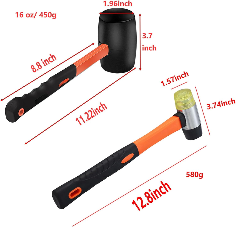 Store New Arrivals Add to Favorite View Feedback Contact 2-Piece Hammer Set - 16 Oz Rubber Mallet Hammer and 40 Mm Double-Faced Soft Hammer with Solid Head and Soft Grip Fiberglass Handle Damage-Free to Flooring, Tile, Crafts and Wood Work Description Item model number 2Pcs Hammer Set Batteries Required? No Head Material Rubber Color Black, Yellow, Wood Country of Origin China Grip Type Ergonomic Item Weight 16 Ounces Handle Material Fiberglass Batteries Included? No Package Dimensions 10 x 3 x 2 inches Included Components 2Pcs Hammer Set 【What You Get】: 1*16oz Rubber Mallet,1*40mm Double-Faced Soft Mallet. 16oz Rubber Mallet Hammer: The solid hammer head is made of premium oil-resistant rubber which features good resilience and wear resistance; strong enough to do the work but gentle enough not to leave a mark Comfortable Grip:fiberglass core, the handle provides exceptional comfort and strong grip Double-faced Mallet: The double-faced rubber mallet consists of two 1-1/2’’ (40 mm) diameter heads made of different materials for versatile uses; The soft black rubber head is for lighter materials and the harder yellow PVC head is for firmer materials; The middle of the head is made of cast iron to increase the striking force Multi-Purpose:perfect tool for furniture assembly, home decoration, tile/ flooring installation, woodworking, handicrafts making and other blow tasks. Whether it's soft or hardwood used in construction, cabinets and furniture, or chrome, aluminum and magnesium components used in cars, trucks and motorcycles, you can work safely without damaging sensitive finishes or surfaces Multi-Purpose:perfect tool for furniture assembly, home decoration, tile/ flooring installation, woodworking, handicrafts making and other blow tasks. Whether it's soft or hardwood used in construction, cabinets and furniture, or chrome, aluminum and magnesium components used in cars, trucks and motorcycles, you can work safely without damaging sensitive finishes or surfaces ABOUT US We offer the best prices around on high quality products. Our E-store includes media such as books, movies, music and games while offering electronics, toys, sporting apparel, clothing, tools, general home, garden items and more. SHIPPING We are always working hard to ensure your package arrives as soon as possible. Please understand that some factors like weather, high postal traffic, and the performance of shipping companies are outside of our control. We offer free shipping to the lower 48 states and ship within 2 business days of payment, usually sooner. We do not accept P.O. Boxes. Please provide a physical address. RETURNS We offer a 30-Day Return Policy on items which you are not completely satisfied with. You have the option for a full-refund or an exchange of the item. No returns are available on items shipped outside of the USA. PAYMENT We accept PayPal. CONTACT US This page content is yet to come Please ad us to your favorite seller and visit again later Thank You CUSTOMER SATISFACTION We try our very best to make sure every customer is completely satisfied. If there's a problem, message us! We're happy to help.