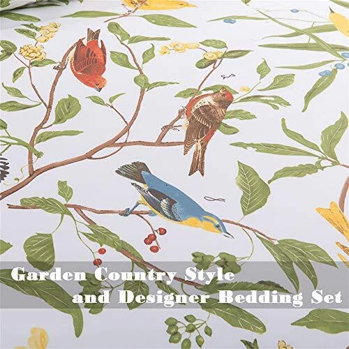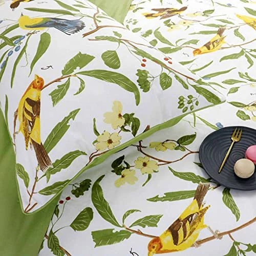 2-Piece Standard Pillowcase Set, Green Floral Garden Bird Printed, 100%