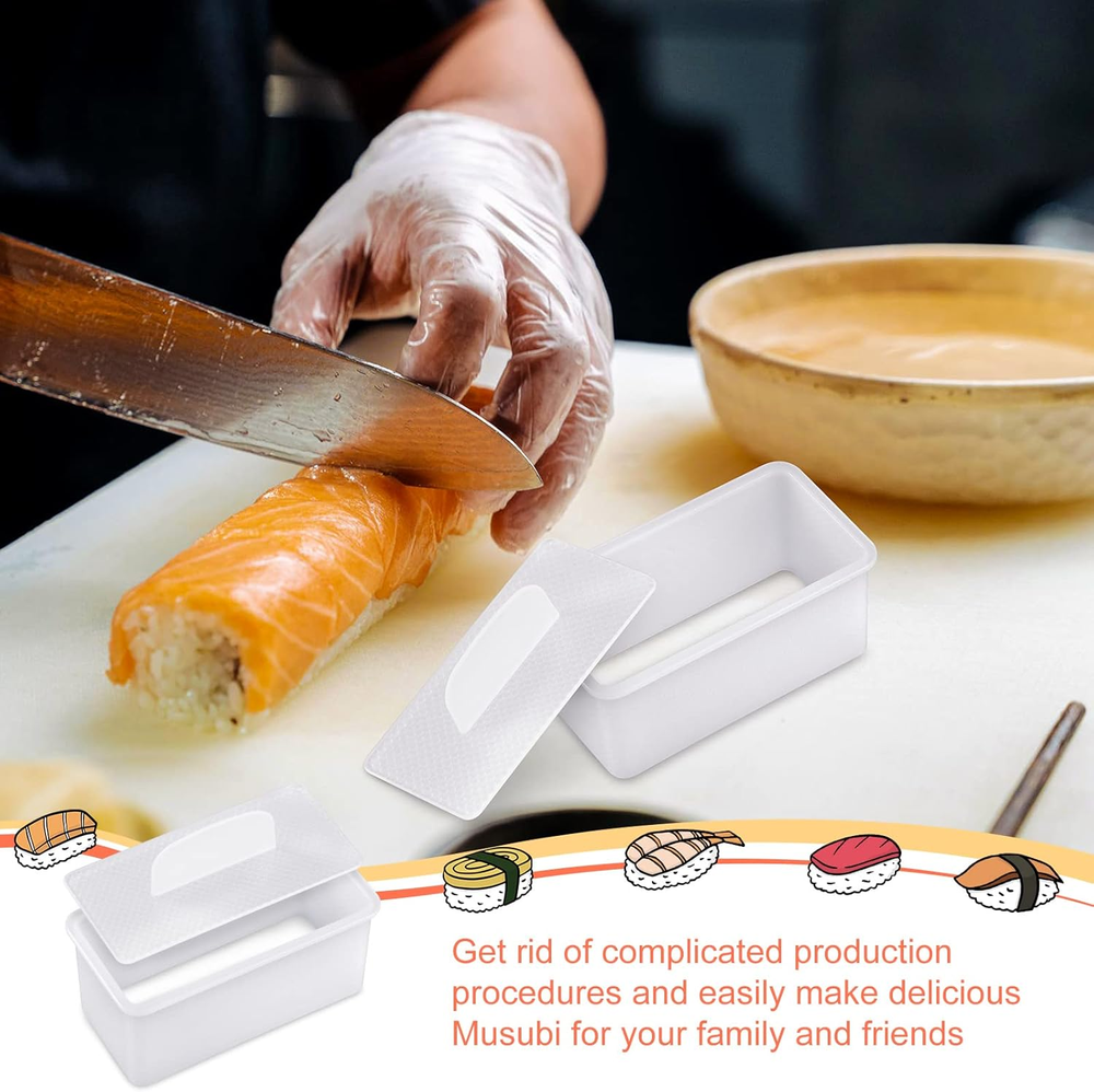 2-Piece White Rectangle Musubi Mold and Slicer Kit for Safe Lunch Prep