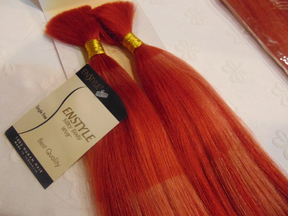 2 Pack 4PCS Enstyle 100% Human Hair Supreme Perm Yaki Bulk 18" Color Red ( 2 Shade) Payment is due within 3 Days of auction closing. Thanks Happy Bidding. 2 Shade of Red