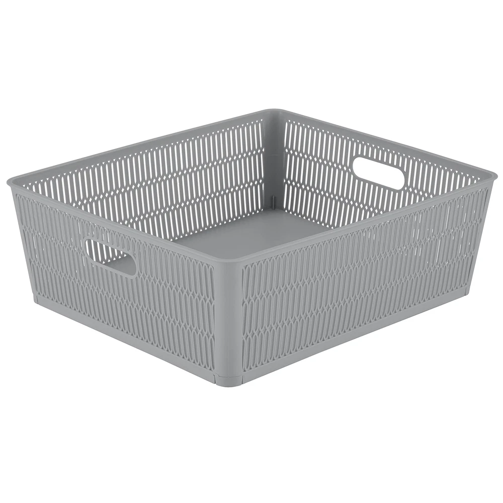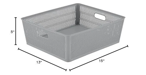 Maximize your storage space with the 2 Pack Slide 2 Stack It Shallow Storage Tote Baskets. Created with a patented slide to stack design which provides slide out corner support that allow the totes to be safely stackable. Storage totes hold up to 25lbs while stacked, allowing you to maximize your storage in closets, cabinets, shelves and more. The totes neatly nest inside when not in use. Organizing just became easier with the slide 2 stack it totes! Dimensions: 15" x 13" x 5" Patented Slide 2 Stack Design: The corners of each storage tote are designed with slide out support to allow totes to be stackable. This helps to maximize your storage space. Nestable: The totes nest easily inside each other when not in use for easy storage and will take up less space. Holds 40lbs: These baskets are strong and durable enough to hold up to 40 pounds when stacked. Multipurpose: These totes are perfect for your bathroom, kitchen, bedroom, and more. You can easily towels, soaps, lotions in it. Or you can use them to organize your craft room.