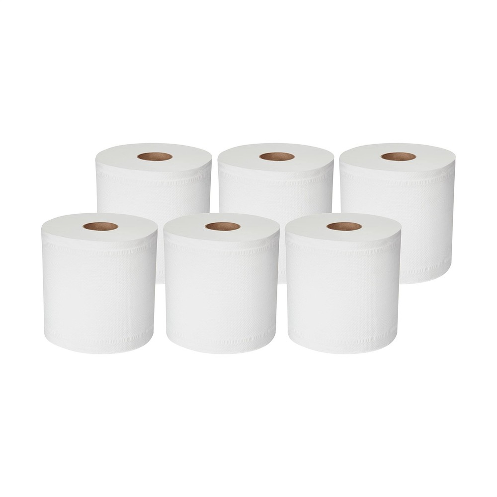 (6) Center-Pull Paper Towel Rolls (600, 7.6' x 8.9' sheets per roll; 3,600 sheets total) Soft, durable, highly absorbent, thick, 100% Virgin White paper, 2-ply design for reliable strength Compatible with any universal center pull paper towel dispenser with 7.6-inch roll height and 7.9-inch roll diameter Designed for away-from-home facilities such as, high-traffic commercial buildings, commercial kitchens, offices, restaurants, break rooms, schools, hotels and healthcare Helps reduce waste by allowing users to easily remove only what is needed FSC Certified