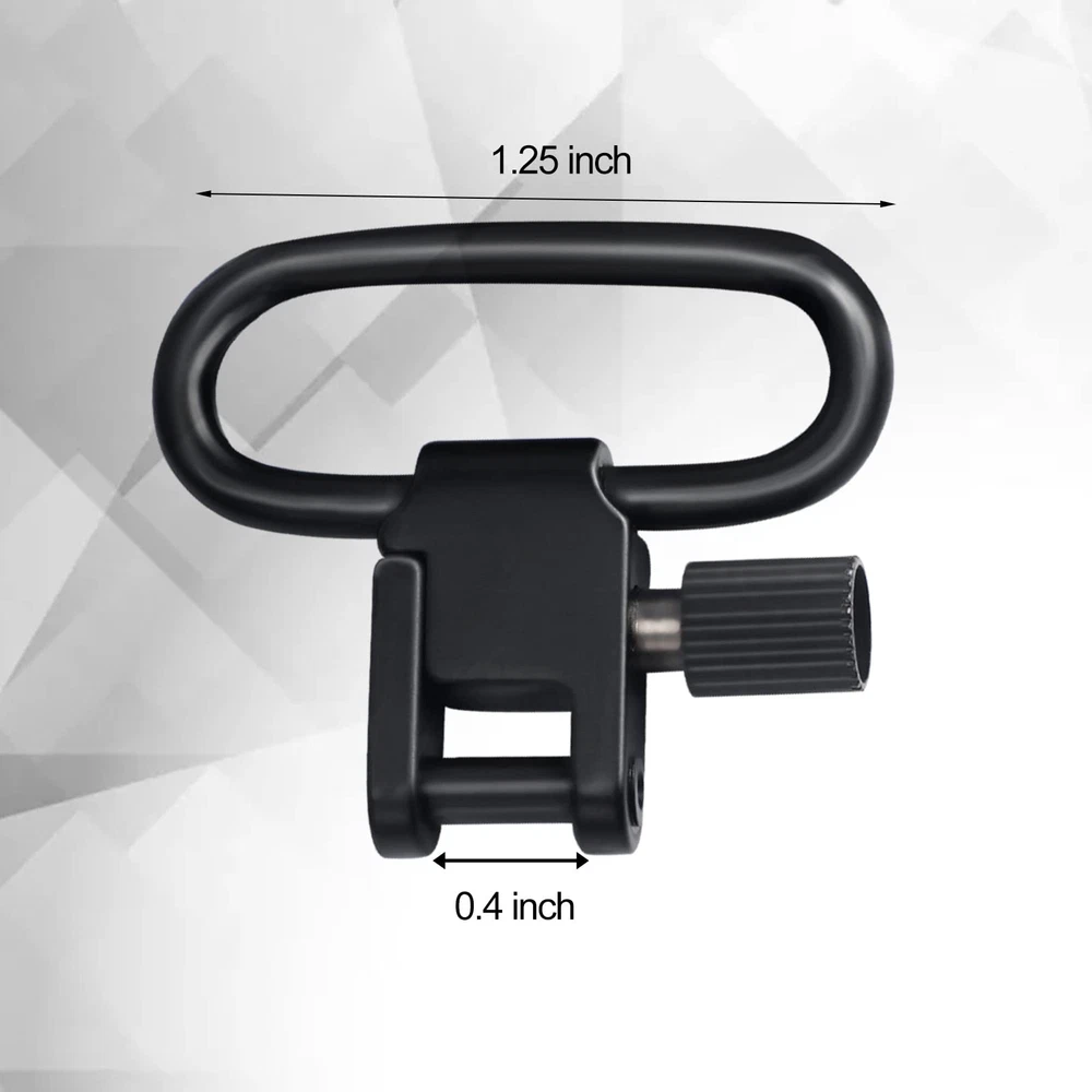 Perfect Design:The close machining tolerances provide flawless fit and silent operation. Tri-Lock System: They have both a knurled knob and are spring loaded. All-Metal Material: All parts are made from high-strength steel. No plastic parts and black finish. Easy to Install:Simply turn the knob clockwise to securely close and lock the pin.Turning counterclockwise and pushing out on the knob releases the locking latch to pivot for attachment and removal. What You Get: 1.25inch Swivel,Set of 2 traditional mounts with 3 pieces studs set every purchase:1 piece 1/2 inch screws,1 piece 3/4 inch screws and 1 piece 7/8 inch machine screw.