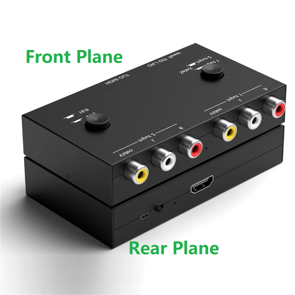 Features: 1. 2 Port to HDMI Converter: Connect to Two RCA Sources (such as DVD and for N64) at the Same Time to Avoid Frequent Plugging and Unplugging, Facilitatingthe Use of Multiple Devices 2. Support HDMI Output: 2AV to HDMI Converter is a Universal Converter for Analog Composite Input to HDMI 1080p 60HZ Output 3. Plug and Play: Plug and Play, no Driver Installation Required. Support 4:3 and 16:9 Outputs, Easy Switching. Support PAL, NTSC3.58, NTSC4.43, SECAM, PAL/M, PAL/N Standard TV Format Input 4. Extensive Compatibility: AV to HDMI Converter with for N64, For PS2/3, for SEGA Saturn/ for GENESIS, for PS ONE, for VCR DVD Player, TV and Projector etc 5. 2AV Switcher/2AV To HDMI Converter: Provide Advanced Signal Processing with Greatprecision, Colors, Resolutions, and Details. 2 Port AV to HDMI Converter Specifications: Input Ports: 2xRCA (Yellow, White, Red) Output Ports: 1xHDMI Support for PAL/ for NTSC_M/ for NTSC4.43/ for SECAM/ for PLA-M/ for PAL-N Support resolution: Up to 1080p60hz Power Supply: DC5V1A(Not included 5V1A power adapter) Product List: 1x 2 Port AV To HDMI Converter 1x USB Power Cable 1x HDMI Cable 1x User Manual