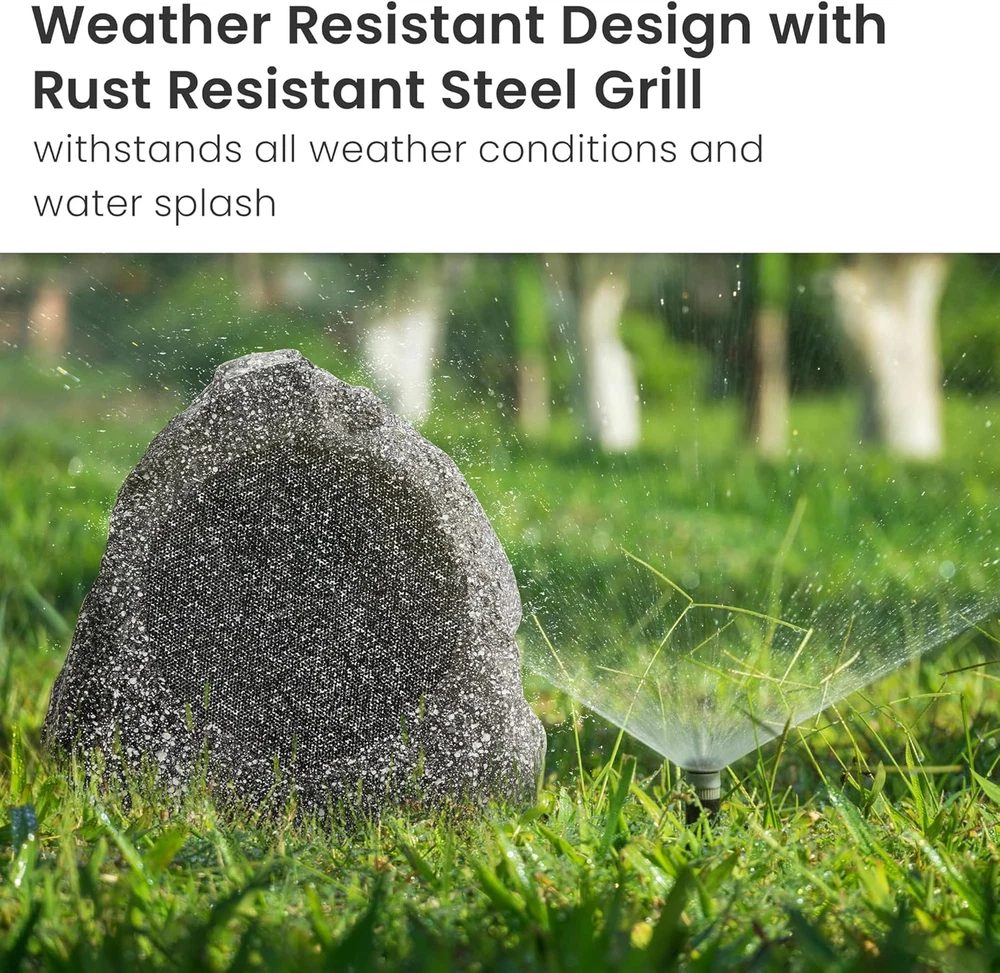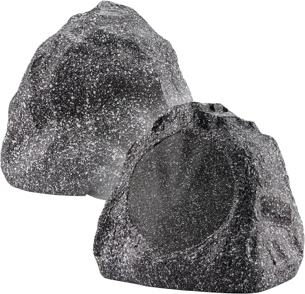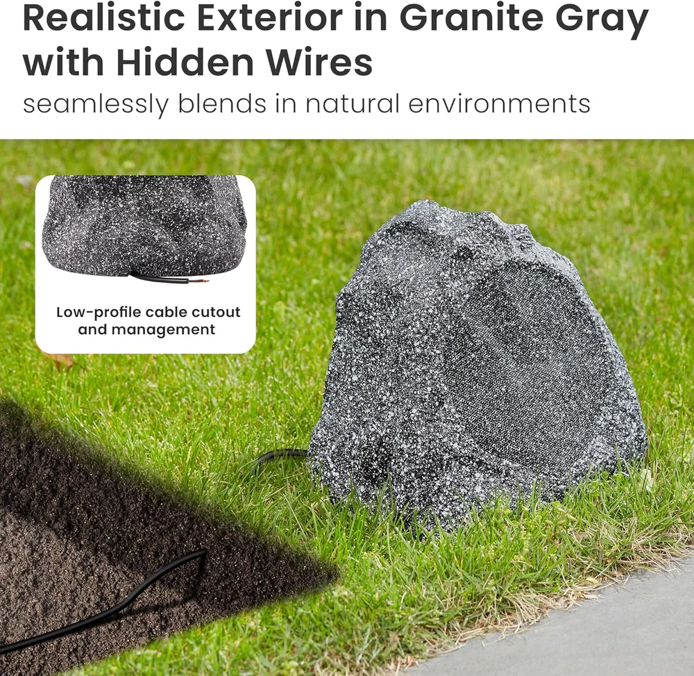 2R6G Outdoor Granite 6.5" Rock 2 Speaker Set for Deck Pool Spa Yard Garden, Gran