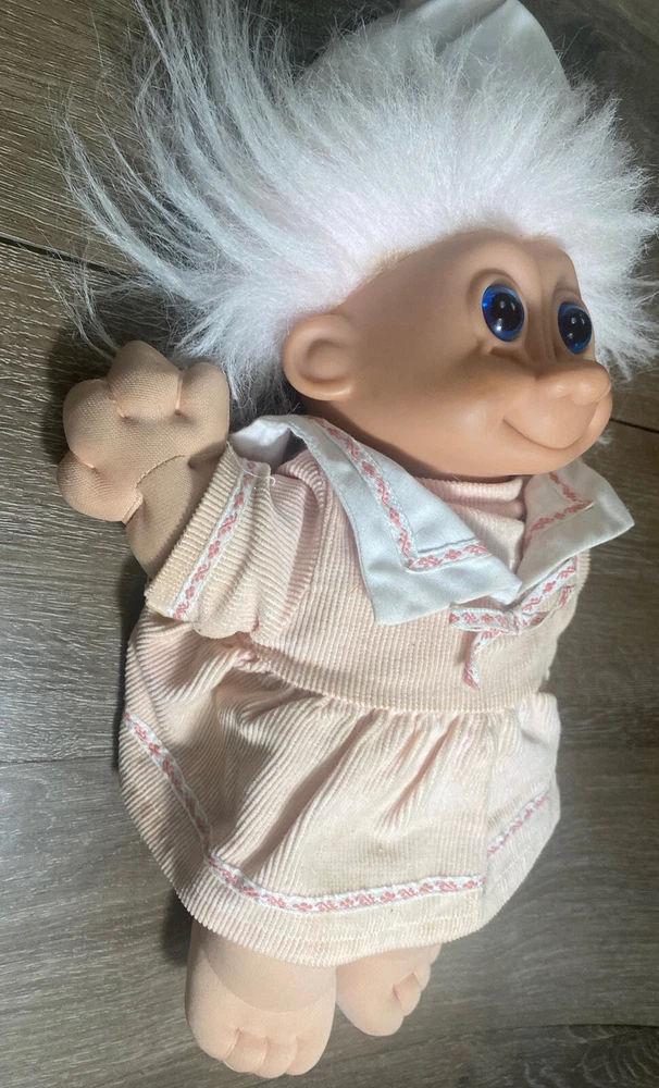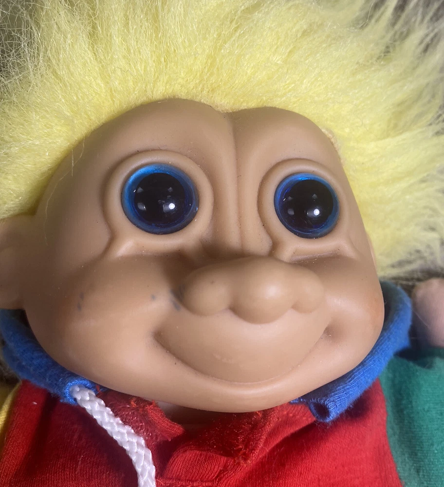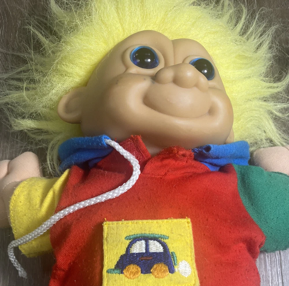 Character: Troll UPC: Does not apply Item Height: 12 in Material: Cloth, Plastic Brand: Russ Number of Pieces: 2 Seller Notes: “See Description.” Color: Yellow Clothing Style: Casual Doll Eye Color: Blue Country/Region of Manufacture: China Type: Troll Doll Doll Hair Color: Yellow + White Doll Type: Troll Doll gtin13: Does not apply Franchise: Troll Dolls