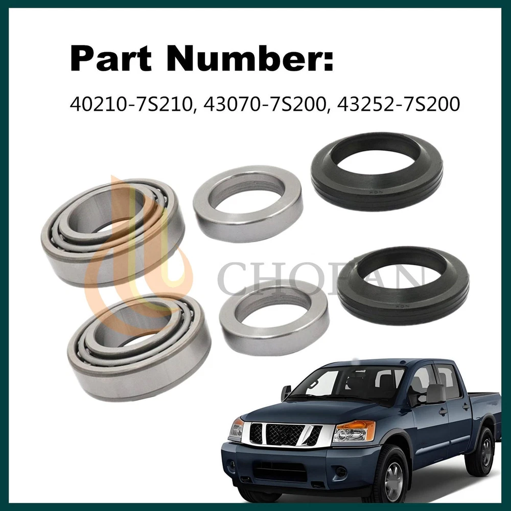 Product Description Condition : New OE/OEM Part Number : 40210-7S210, 43070-7S200, 43252-7S200 Fit for: For NISSAN FRONTIER 2005 - 2017 (Confirm with VIN) For NISSAN XTERRA 2006 - 2015 (Confirm with VIN) For NISSAN TITAN 2004 - 2007 (Confirm with VIN) Package included: 2* Rear Axle Bearing +2* Spacer + 2* Oil Seal Notice: 1. If you are not completely satisfied with your purchase, you may return it for a refund or exchange it for a replacement. We only require that you contact us within 14 days of receiving your item and return it in the same condition it was received. 2.Please check the model before your purchase and compare the position of the screw hole In case of wrong purchase. 3.If you have any questions, please contact us by email and we will solve them for you. On Aug 1, 2025 at 19:44:23 PDT, seller added the following information: On Sep 10, 2025 at 23:20:01 PDT, seller added the following information:
