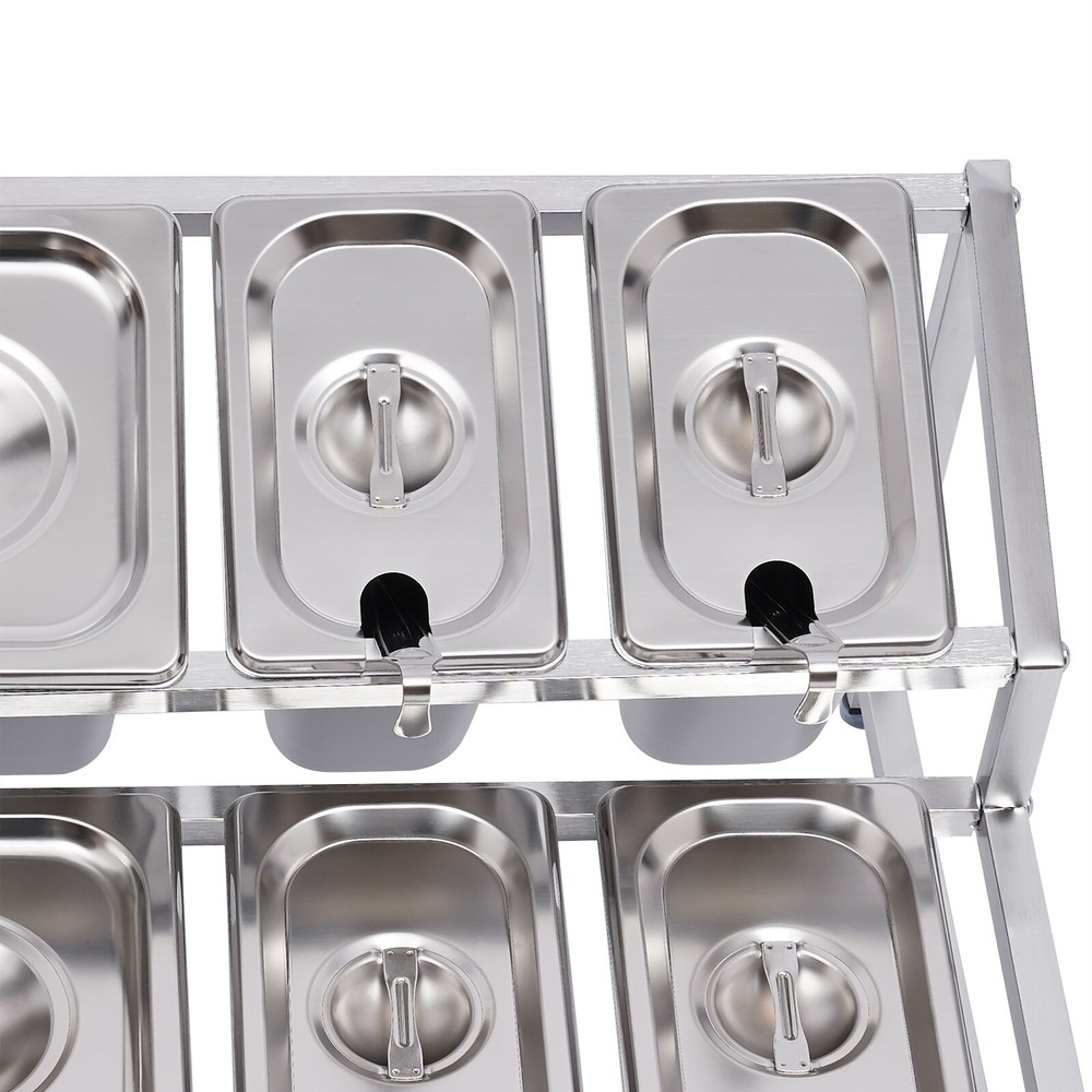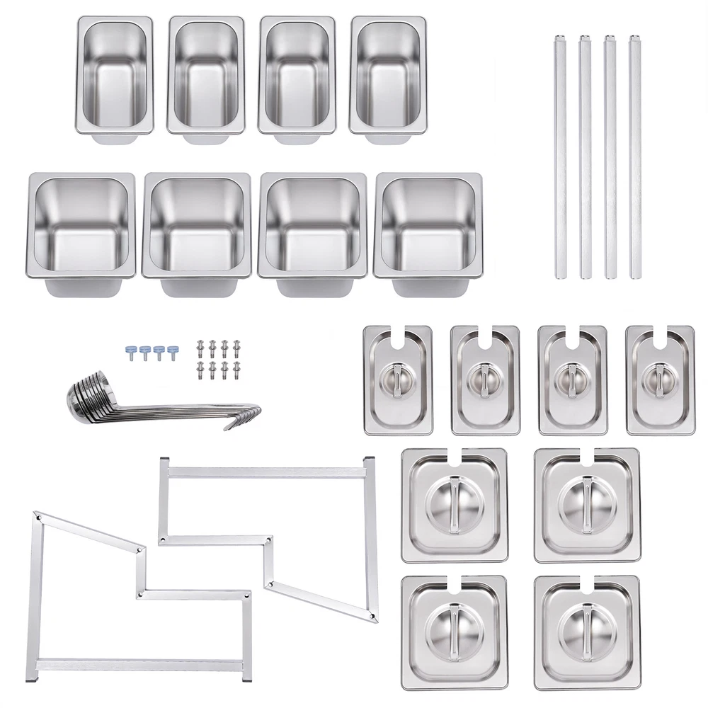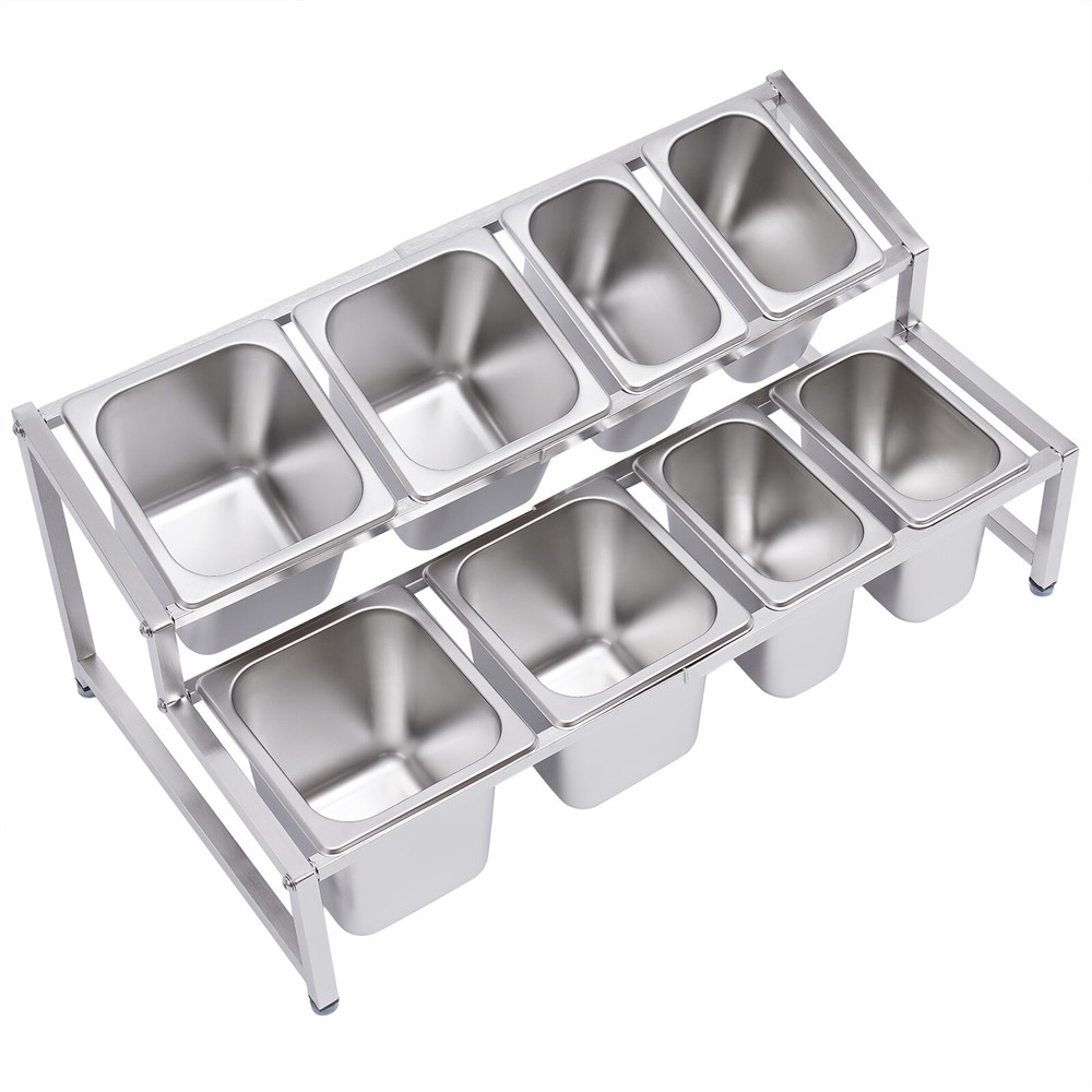 💖High Quality & Fast Shipping~💖 Description A neat, clean, and stylish kitchen need a user-friendly spice rack to store and organize your abundant spices for you. This sturdy and stable shelf not only effectively uses the vertical space of the countertop, but also easily avoids the embarrassment of tipping over the spice pan. This countertop inclined spice rack will give you a neat and comfortable kitchen to enjoy your cooking! Specification Shelf Material: 304 Stainless Steel Pan Material: 201 Stainless Steel Color: Silver Installation Type: Freestanding Process: Polished, Electrolysis Special Feature: Expandable Spice Rack Number of Tiers: 2 Number of Shelves: 1 Food Pan Quantity: 4 x 1/9 Pans + 4 x 1/6 Pans 1/9 Pan Dimensions: 17.5*11*15cm/6.88*4.33*5.9in Shelf Length Range: 35-60cm/13.8-23.6in 1/9 Pan Capacity: 1.6L/1.69Qt Load Capacity: 30kg/66lbs 1/6 Pan Dimensions: 17.5*16.5*15cm/6.88*6.49*5.9in Packing Size: 48*34*21cm/18.89*13.38*8.26in 1/6 Pan Capacity: 2.2L/2.32Qt Gross Weight: 7.5kg/16.53lbs Shelf Dimension: 58*35*27.5 cm/22.8*13.8*10.8in Net Weight: 7kg/15.43lbs Package Included 2 x Side Support Frames 3* Telescopic Tubes 4 x 1/9 Pans 4 x 1/6 Pans 8 x Ladles 8 x Lids 4 x Adjustable Foot Pads All Accessories Required for Installation Key Features High-quality Material: The shelf is made of high-quality 304 stainless steel, and the pans are made of 201 stainless steel, both of which are strong, wear-resistant, rust-resistant, and corrosion-resistant to ensure long service life. Wide Application: The stable performance of stainless steel is resistant to acids and alkalis, making it suitable for a variety of seasonings and safe for use in dishwashers, ovens, and freezers. Large Capacity: With a total of four 1/6 pans (2.32 Qt) and four 1/9 pans (1.69 Qt), this countertop inclined spice rack set can be used not only for everyday household needs but also in restaurants and canteens. The large capacity also eliminates the need for frequent refilling. User-friendly Design: The flat lower shelf and inclined upper shelf make it easy for you to select and access the spices or sauces you need, which is very practical and fast to greatly improve efficiency. Space Saving: It makes good use of the vertical space of the countertop to organize your kitchen spices or sauces in an orderly manner, keeping your kitchen neat and tidy Telescoping Shelf: The support telescoping tube is adjustable in length (13.8-23.6in), allowing you to choose the number of pans to hold depending on your needs, as well as slide the pans to the left or right for easy access as you wish. High Load-bearing Capacity: Compared with directly placing the food pans on the tabletop, which tends to be knocked over or overturned, this frame adopts durable stainless steel and provides firm support. It ensures a good load-bearing capacity of up to 66lbs and can stably accommodate multiple filled pans. Easy to Install: Its simple structure and complete screw accessories allow you to easily complete the installation. All you have to do is attach and tighten the shelf with the screws provided, saving you time and effort. Easy to Clean: The removable pans and the electrolytic processed stainless steel, make cleaning a breeze. You can clean it directly with water without taking too much time. Easy to Store: The detachable shelf and stackable pans will easily fit in any wall cabinet without taking up too much space. Details Practical Lid: Each pan comes with a lid to protect the spices from dust and moisture, maintaining the hygiene and quality of the spices. A recess on the lid ensures that the spoon is securely placed without affecting the seal of the lid. In addition, the top of the lid is designed with a handle for your convenience. Adjustable Foot Pad: The adjustable non-slip feet at the bottom adapt well to uneven countertops, making placement stable without tilting or slipping. It also protects the countertop from scratching. Rounded Corners: The rounded corners and smooth polished edges without burrs protect your hands from scratches and scrapes, making them more secure to use. Practical Ladles : Each pan is equipped with a ladle to avoid mixing spices. The ladle also makes it easier to control the number of spices precisely for a delicious meal. Application It is widely used in the home or commercial kitchens, canteens, pantries, cafes, beverage stores, and restaurants to store condiments, spices, sauces, jams, sweet soups, coffee beans, sugar, nuts, grains, etc. Notes Please note that the shelf can only be adjusted to a maximum of 60cm/23.6in. Please allow the slight color difference caused by the shooting light and 1-3cm error due to manual measurement, and make sure you do not mind before you order. Payment Delivery details Terms of sales About us Contact us Payment We accept ebay payment 。 Fees such as import duties, taxes are not included in the item price or shipping costs. These charges are the buyer's responsibility. Delivery details Shipping: 2-9 working days to: USA Terms of sales We maintain high standards of excellence and strive for hundred percent customer satisfaction. Feedback is very important to us. We hope that you contact us immediately before you give neutral or negative feedback, so that we can address your concerns. It is impossible to address issues if we do not know about them! About us Your satis faction is our ultimate goal. We work hard to earn your trust and future business. Our certified technicians have tested each item before shipping. The unit comes with 1 year limited warranty on all manufacturing defects. a) If you receive a defective item, you may return it or ask for a discount. Please contact us within 14 days after you receive the package. b) What you returned must be intact and in its original packaging as re? u. Customer is responsible for shipping costs of the returned item. c) We will cover the cost of shipping back t with the shipping rate indicated in the registration page