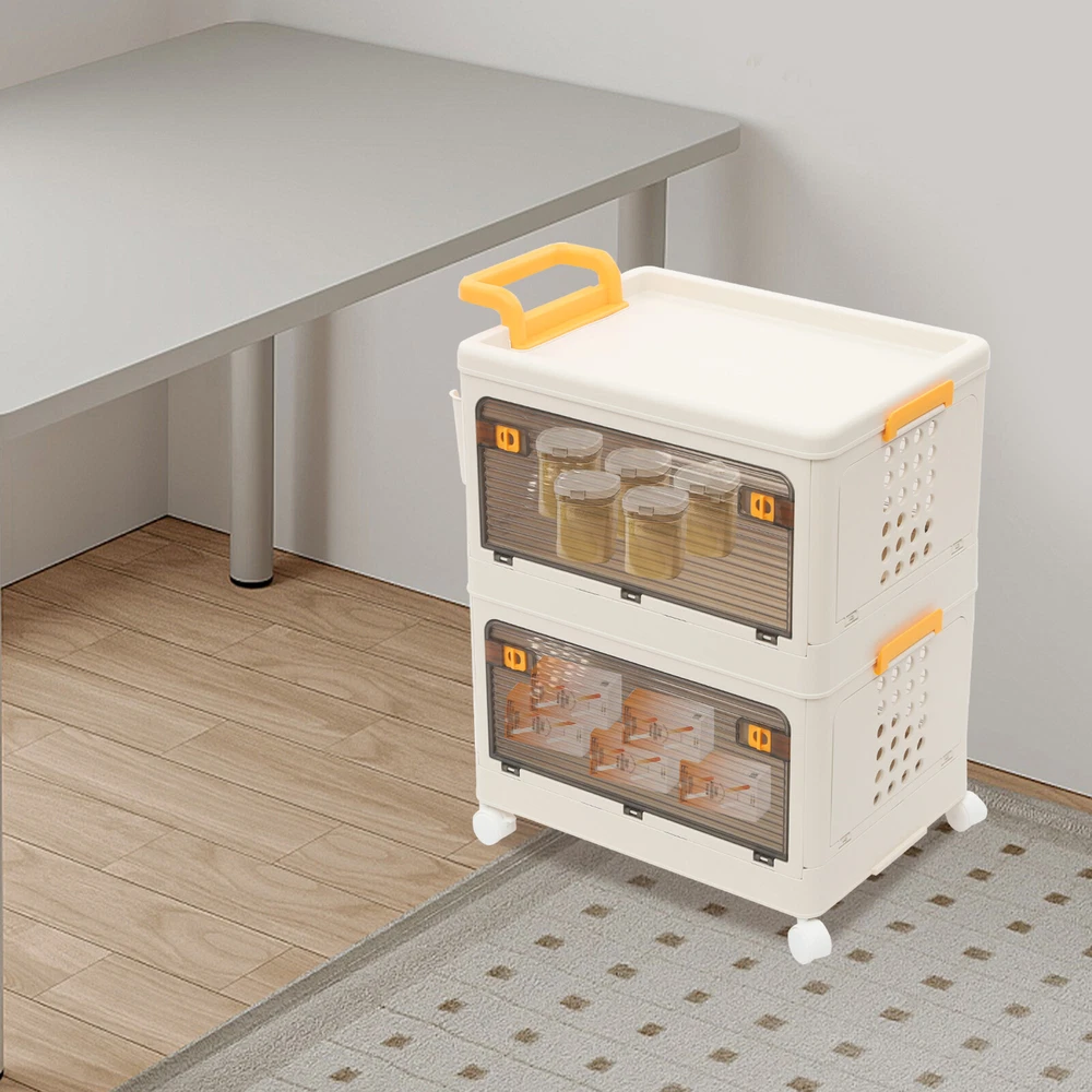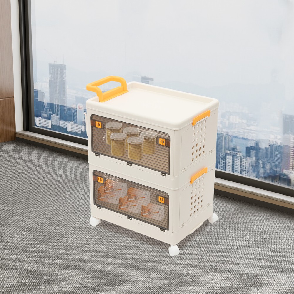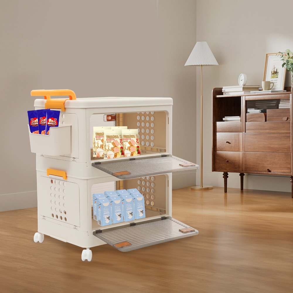 This storage cabinet is a game-changer for organizing small spaces! The sturdy PP construction holds up to 40kg per shelf, and the smooth-rolling wheels make it easy to move around. Love that it folds flat when not in use and comes with an extra basket—perfect for keeping everything tidy. Modern white design blends seamlessly into any room. Super easy to assemble and surprisingly spacious for its compact size. Highly recommend for anyone needing versatile storage!