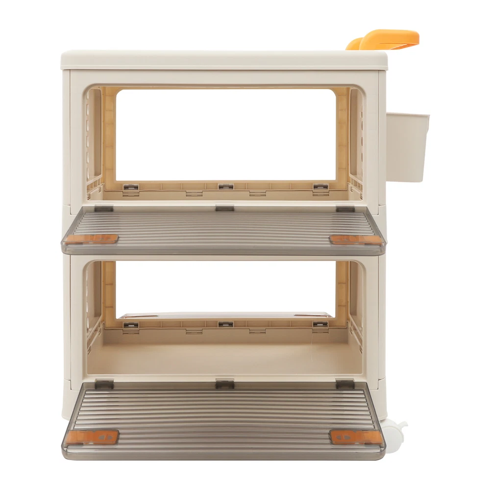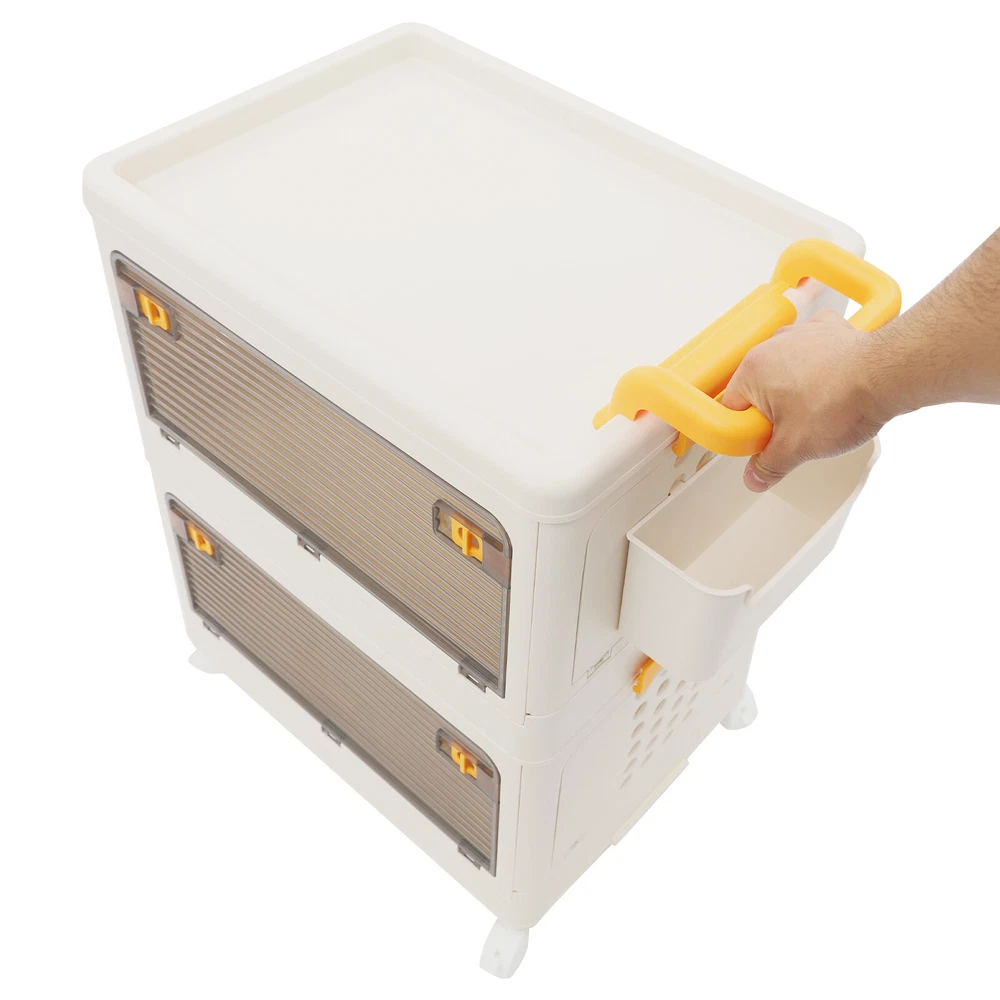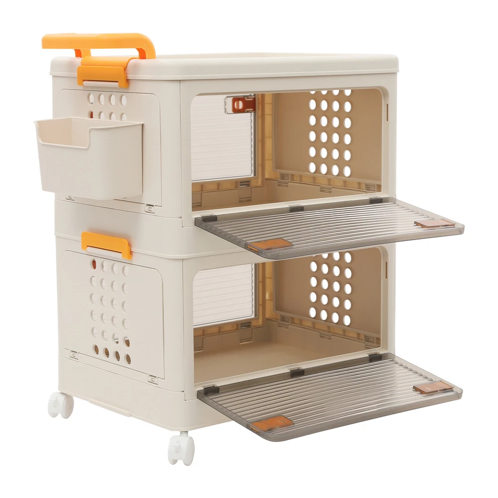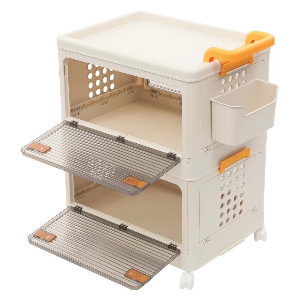 This storage cabinet is a game-changer for organizing small spaces! The sturdy PP construction holds up to 40kg per shelf, and the smooth-rolling wheels make it easy to move around. Love that it folds flat when not in use and comes with an extra basket—perfect for keeping everything tidy. Modern white design blends seamlessly into any room. Super easy to assemble and surprisingly spacious for its compact size. Highly recommend for anyone needing versatile storage!