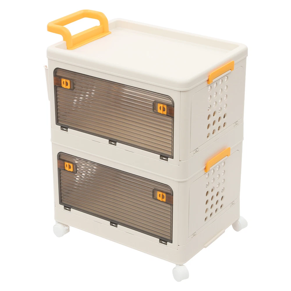 Specifications Material: PP Color: White Style: Modern Shape: Rectangle Mounting Type: Floor Standing Assembly Required: Yes Each Tier Load Capacity: About 40kg/88.18lbs Number of Tiers: 2 Number of Universal Wheels: 4(Two With Brakes) Product Size: 56*36*64cm/22.05*14.17*25.2in Package Size: 50*37*27cm/19.69*14.57*10.63in Gross Weight: 4.4kg/9.7lbs Net Weight: 3.4kg/7.5lbs Package Included 1* 2-tier Storage Bin 1* Small Storage Basket 4* Universal Wheels 2 Tiers Foldable Storage Cabinet Foldable and Movable Storage Box, Storage Bins Description To say goodbye to the dirty room and create a clean and high-value room, we designed this 2-tier storage bin for you. This 2-tier storage can effectively improve space utilization. It can be used to store clothes, children's toys, pet supplies, kitchen condiments, bathroom supplies, etc., which is economical and affordable, so buy and try it! Key Features Selected Material : High-class PP makes this product hard, environmentally friendly , odorless , dustproof , waterproof , and not easy to deform so that it can be used for a long time. Ample Storage Capacity : The 2-tier design provides plenty of space to organize and store a variety of items, such as clothing or household essentials, to keep your home tidy. The side basket can also hold keys and other small items, and the top platform can hold mugs, table lamps, vases, and more. It also helps children develop good organizing and storage habits from a young age. Thoughtful Design: The semi-clear door allows you to view the contents without opening the door, and the ventilation holes on the side effectively prevent odors and keep the interior fresh and dry. Easy to Access: The four-side door opening design and removable top allow you to access items from different angles. Strong Load-Bearing Capacity: The rectangular structure and sturdy material allow each tier to hold about 88.18 lbs, so you can use it with confidence. Space Saving : Its multi-tier design uses vertical space, making it easy to create storage space in just a small corner. Moreover, it can be folded into a smaller size when not in use, allowing for efficient storage and saving valuable space in your home or garage. Easy to Move&Fix: The top handle and 4 universal wheels (two with brakes) make this product easy to push and pull, move, and fix, which is very energy-saving. Simple Installation : Simple construction and complete accessories allow you to assemble it in a short time, saving time and effort. Nice Gift : Thanks to its large capacity and beautiful appearance, you can give this product as a housewarming gift or holiday gift to your family, colleagues, or friends so that they can enjoy a more convenient life. Simple Maintenance : Thanks to its smooth surface and simple construction, you can easily clean it with a soft cloth (not included). Details Smooth Edges : The smooth and burr-free edges not only take better care of your hands and clothes but also improve the aesthetics of the product. Raised Guardrail: The raised top design prevents items from falling. Buckle Design : The side buckle design ensures a secure connection between tiers, making it hard to detach. Application This product is suitable for a variety of environments such as bedrooms, study rooms, toy rooms, and offices. It's ideal for organizing clothing, toys, books, craft supplies, office supplies, snacks, and other items. Specifications Material: PP Color: White Style: Modern Shape: Rectangle Mounting Type: Floor Standing Assembly Required: Yes Each Tier Load Capacity: About 40kg/88.18lbs Number of Tiers: 2 Number of Universal Wheels: 4(Two With Brakes) Product Size: 56*36*64cm/22.05*14.17*25.2in Package Size: 50*37*27cm/19.69*14.57*10.63in Gross Weight: 4.4kg/9.7lbs Net Weight: 3.4kg/7.5lbs Package Included 1* 2-tier Storage Bin 1* Small Storage Basket 4* Universal Wheels Notes Please carefully check the dimensions before purchasing. Please use this product within the load-bearing range. Please note that this product does not contain clothes, toys, snacks, and other items. Please allow the slight color difference caused by the shooting light and 1-3 cm error due to manual measurement, and make sure you do not mind before ordering. Payment Delivery details Terms of sales About us Contact us Payment We accept ebay payment 。 Fees such as import duties, taxes are not included in the item price or shipping costs. These charges are the buyer's responsibility. Delivery details Shipping: 2-9 working days to: USA Terms of sales We maintain high standards of excellence and strive for hundred percent customer satisfaction. Feedback is very important to us. We hope that you contact us immediately before you give neutral or negative feedback, so that we can address your concerns. It is impossible to address issues if we do not know about them! About us Your satis faction is our ultimate goal. We work hard to earn your trust and future business. Our certified technicians have tested each item before shipping. The unit comes with 1 year limited warranty on all manufacturing defects. a) If you receive a defective item, you may return it or ask for a discount. Please contact us within 14 days after you receive the package. b) What you returned must be intact and in its original packaging as re? u. Customer is responsible for shipping costs of the returned item. c) We will cover the cost of shipping back t with the shipping rate indicated in the registration page. We will send you a new unit or refund the full payment you paid. Thank you. Contact us Business Hour Business Hour: Monday To Friday: 8:30 AM to 5:00 PM (Beijing China time) Due to time zones, our reply to your questions may not be immediately. But within above working time, we will reply your email within 24 hours. If it's non-workdays, please kindly be patient and wait till Monday. Please contact us with ebay message. Please feel free to contact us if you have any questions. Monday To Friday: 8:30 AM to 5:00 P